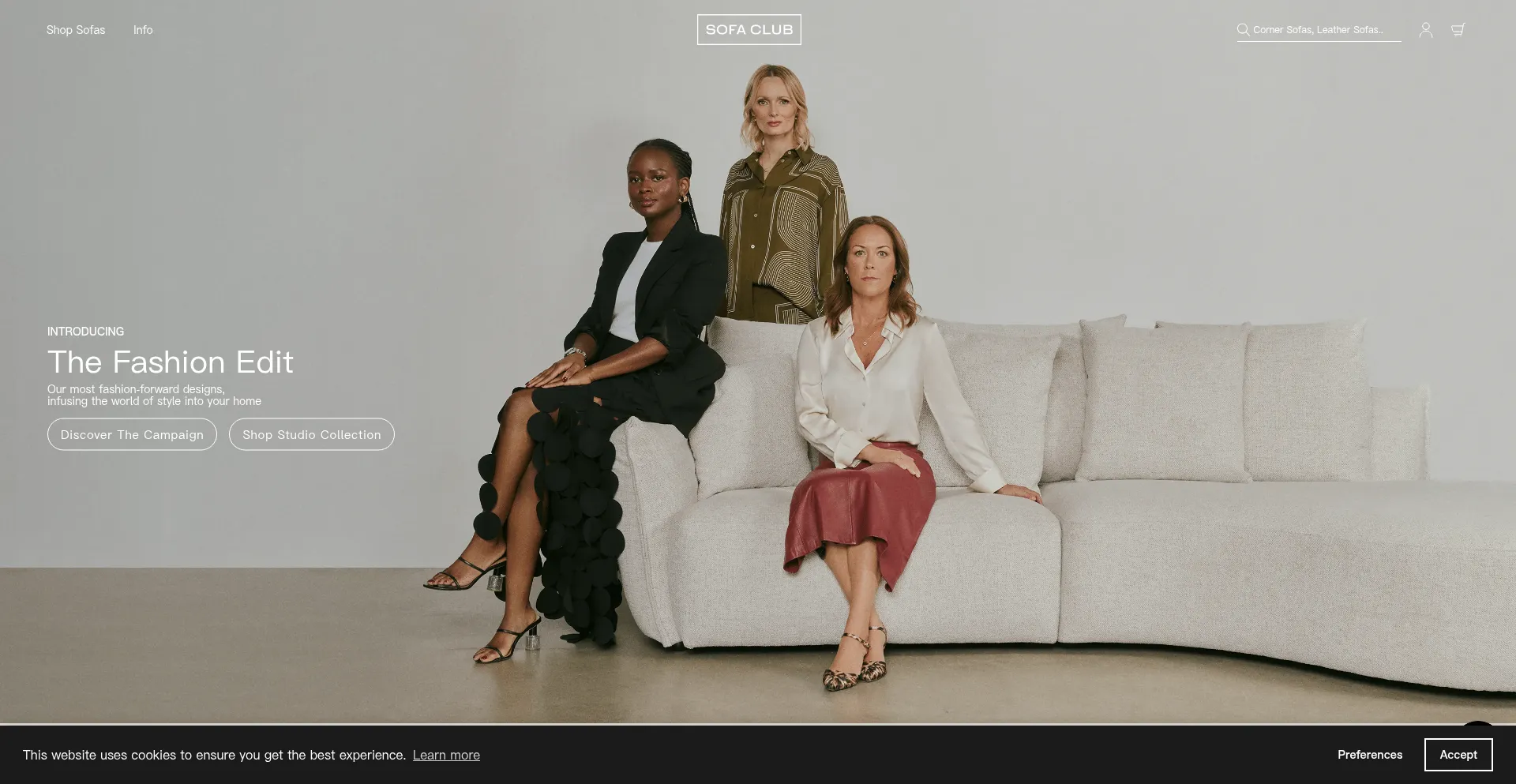 该网站实现符合GDPR或CCPA等隐私法规的cookie同意机制。这表明 sofaclub.co.uk 遵守数据保护标准并为用户提供对个人数据收集实践的控制。