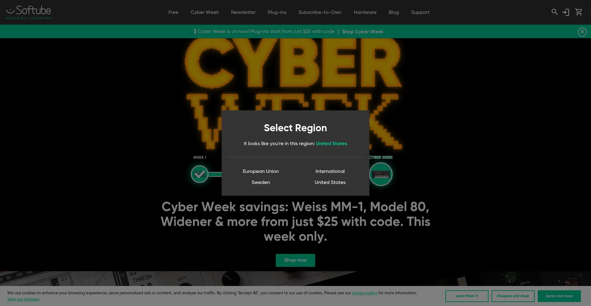 该网站实现符合GDPR或CCPA等隐私法规的cookie同意机制。这表明 softube.com 遵守数据保护标准并为用户提供对个人数据收集实践的控制。