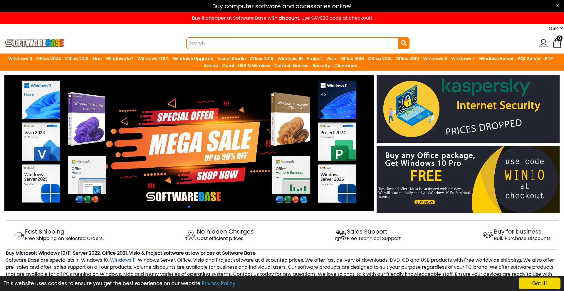 分析表明 softwarebase.uk 作为电子商务平台运营,促进商品或服务的在线交易。该网站实现了购物车功能、支付处理系统和产品目录功能,这些是商业零售运营的典型特征。
