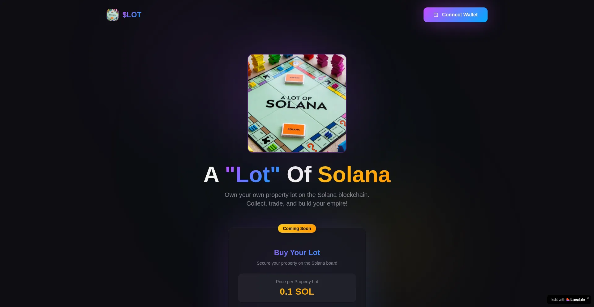Own your own property lot on the Solana blockchain. Collect, trade, and build your empire with $LOT tokens.