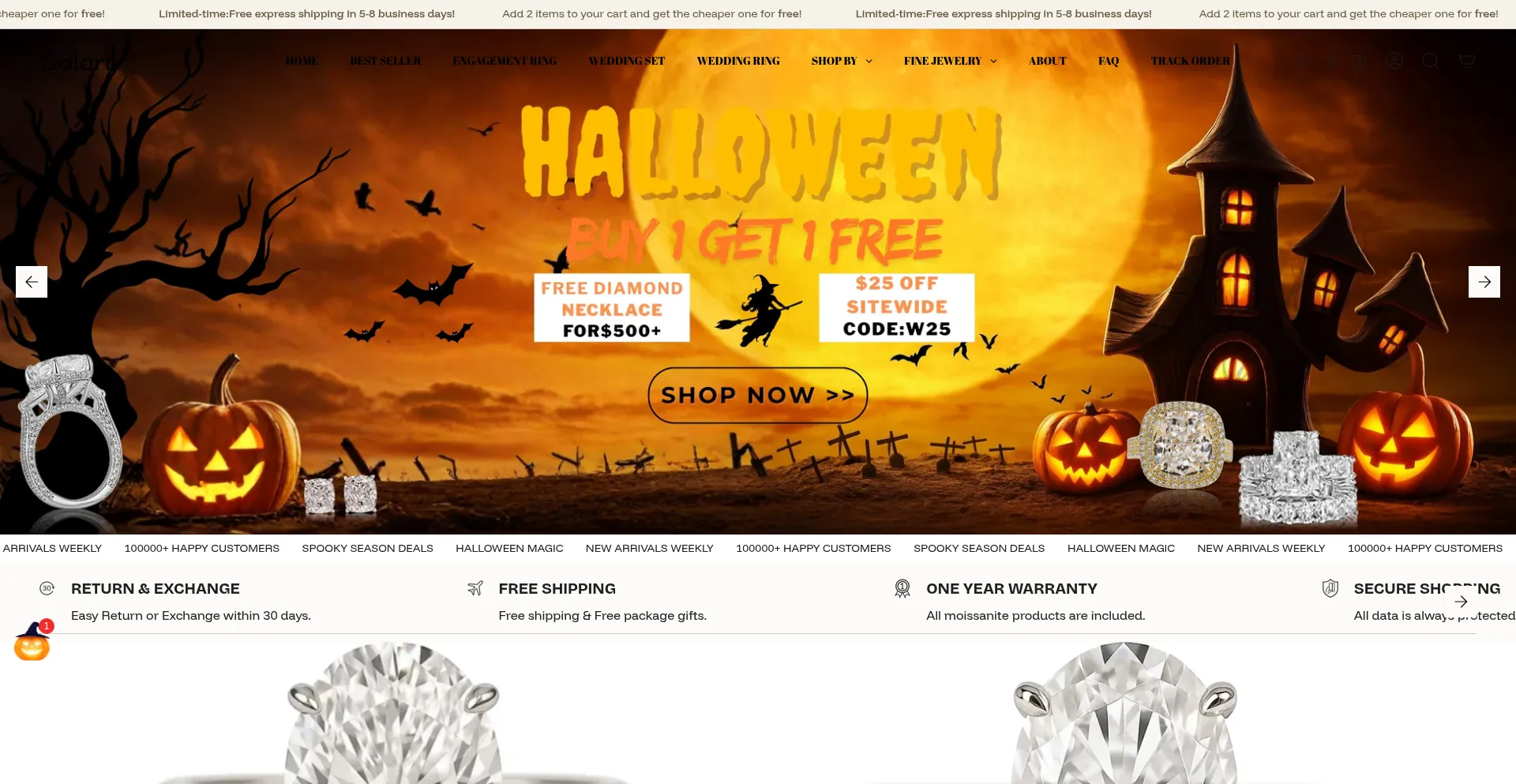 该网站利用流行产品名称和品牌来吸引流量并产生用户兴趣。这些产品可能通过促销活动或折扣策略提供,旨在增加 solariijewelry.com 的访客参与度和转化率。