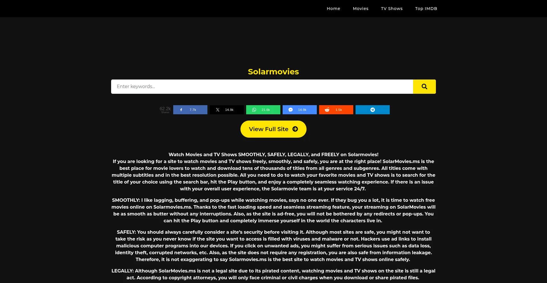 帮助保护他人,快在社交媒体上分享此页面吧!知道solarmovies.ms的人越多,骗子就越难得逞。 通过在社交媒体上分享此页面,帮助更多人发现可靠的solarmovies.ms吧!