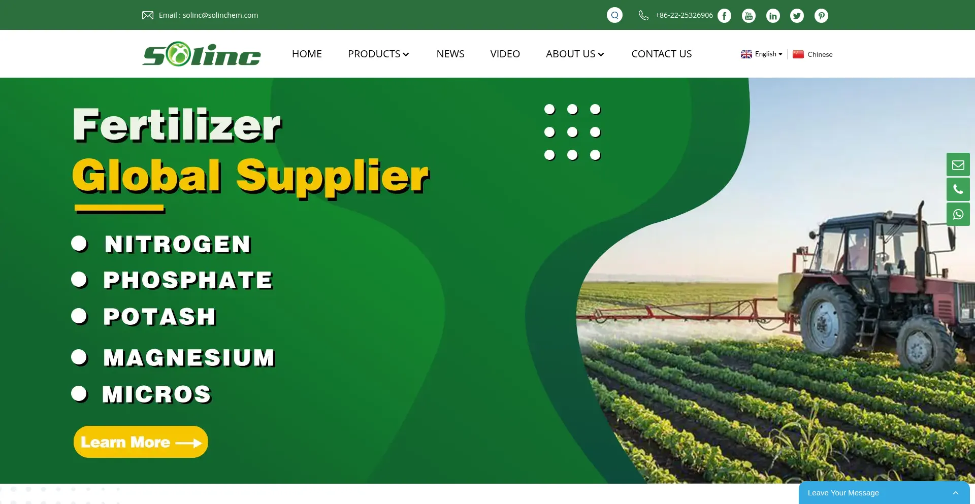 网站上存在社交媒体链接表明 solincfert.com 在社交媒体上维护官方账户,这是可信度和参与度的积极信号。