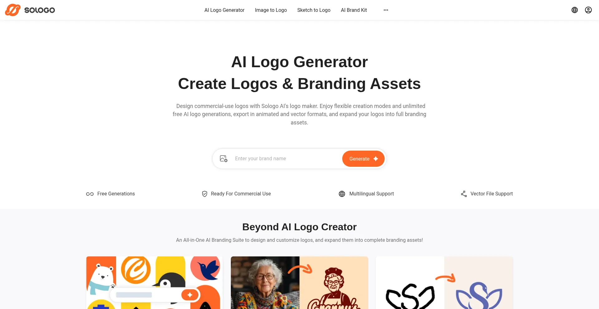 Free AI Logo Generator|Create Commercial-use Logos & Brand Assets | SologoAI