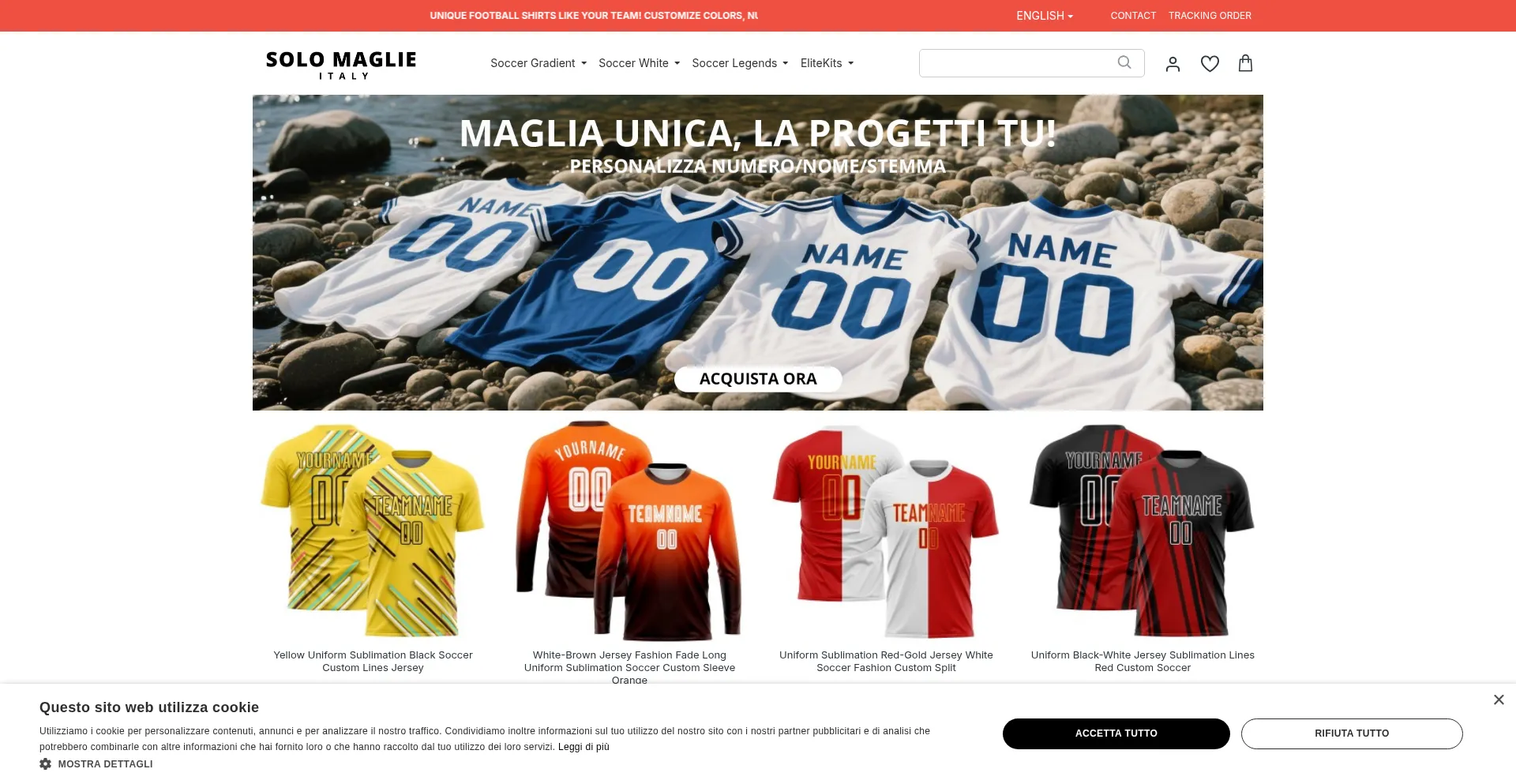 Designa la tua maglia da calcio personalizzata con colori, numeri e loghi. Qualità professionale, tessuti traspiranti e consegna rapida per squadre e tifosi. Realizza il sogno ...