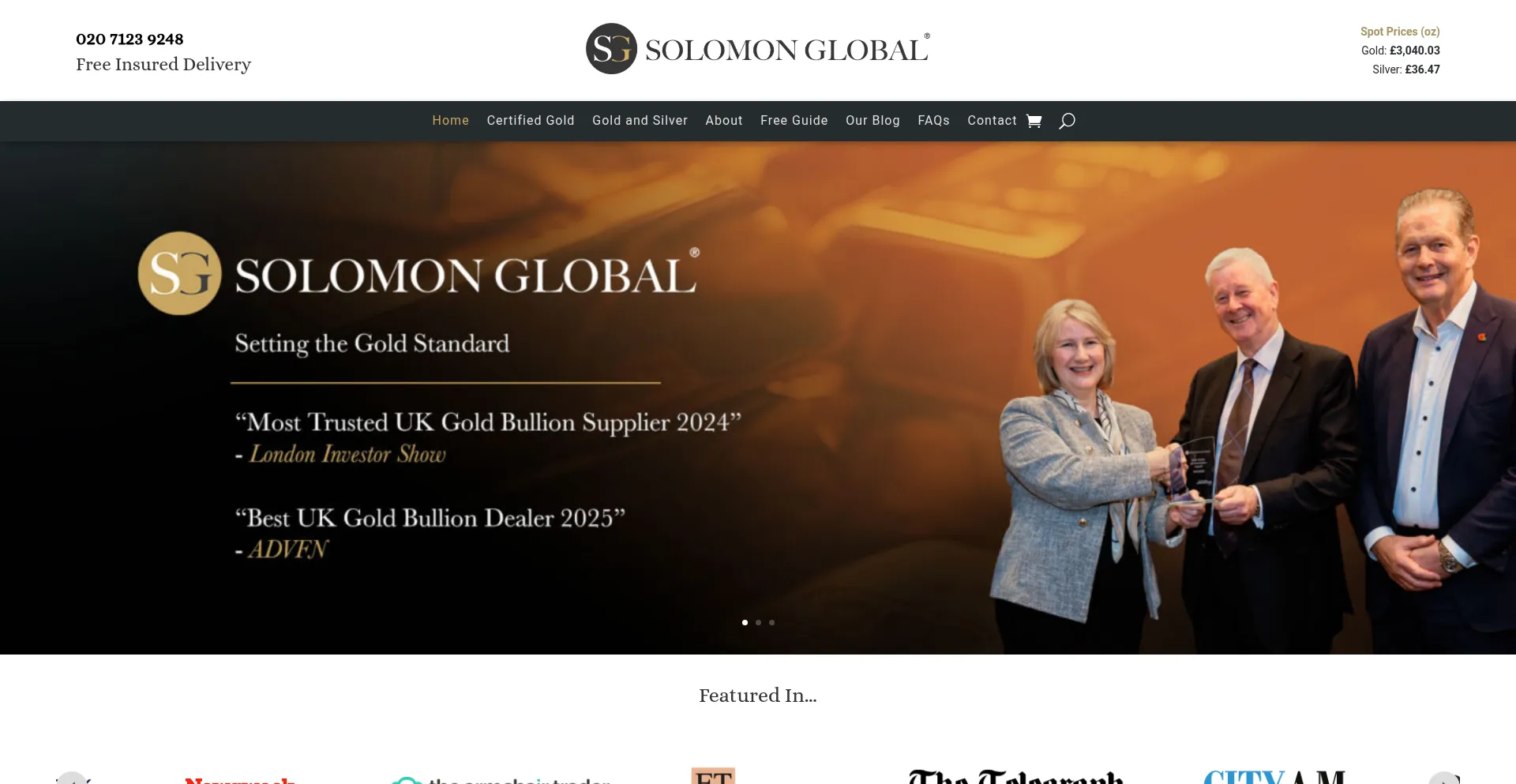 Buy gold online with Solomon Global. Explore certified gold bullion and coins with purity guarantees, tax-free options, secure UK delivery.