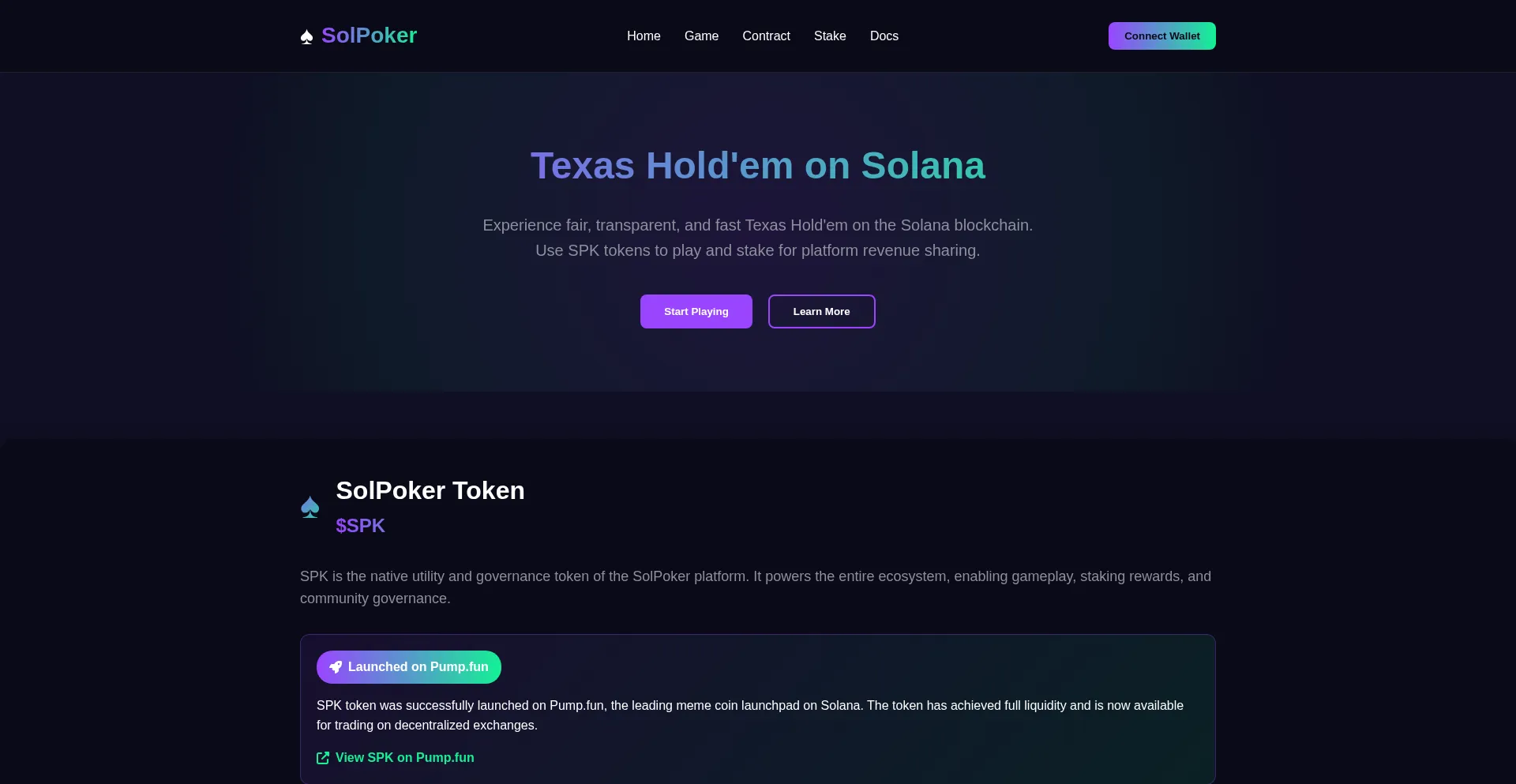 Experience fair, transparent, and fast Texas Hold'em on the Solana blockchain.