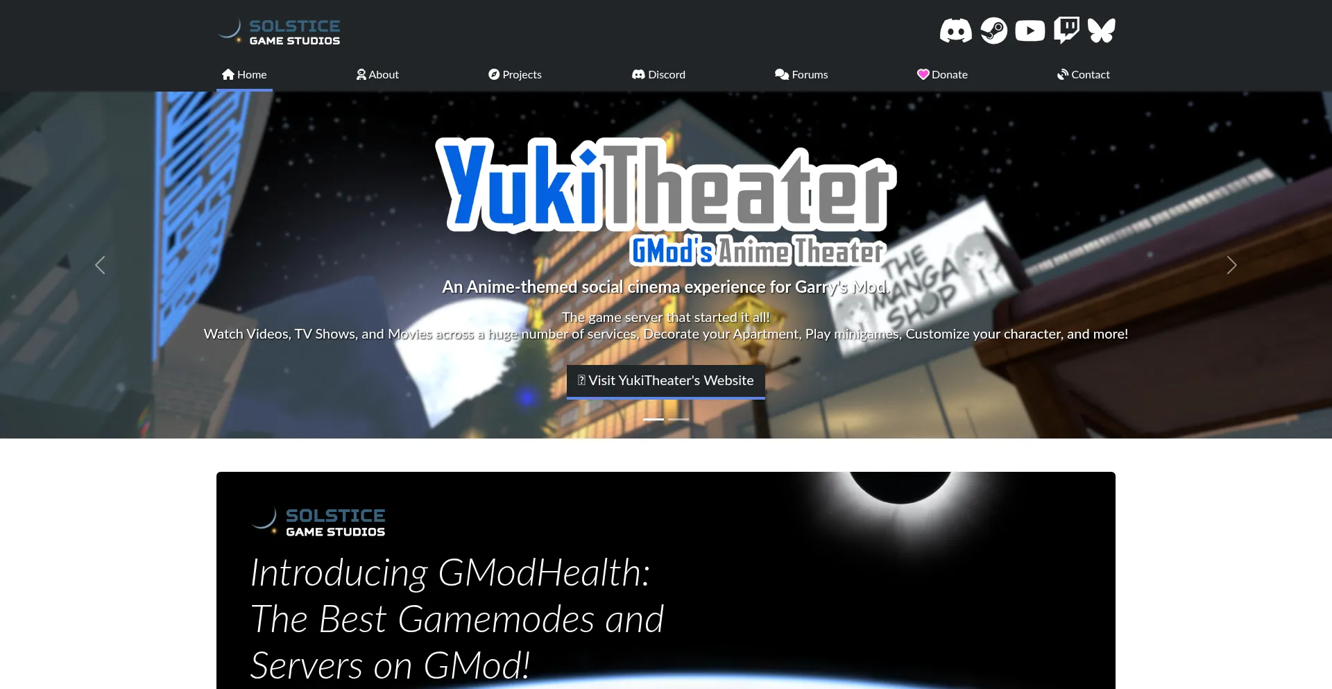 solsticegamestudios.com 使用 Bootstrap,这是一个广泛采用的开源响应式网页开发框架。Bootstrap 通过标准化组件和样式实现移动友好界面的高效创建。