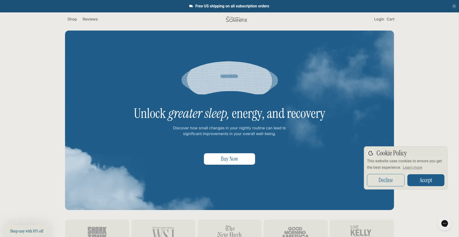该网站实现符合GDPR或CCPA等隐私法规的cookie同意机制。这表明 somnifix.com 遵守数据保护标准并为用户提供对个人数据收集实践的控制。