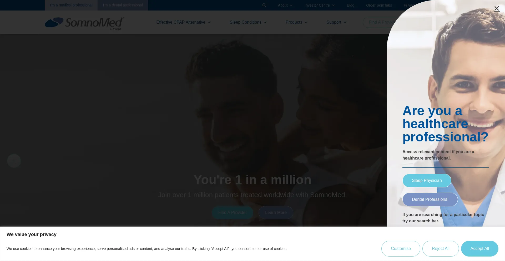 该网站实现符合GDPR或CCPA等隐私法规的cookie同意机制。这表明 somnomed.com 遵守数据保护标准并为用户提供对个人数据收集实践的控制。