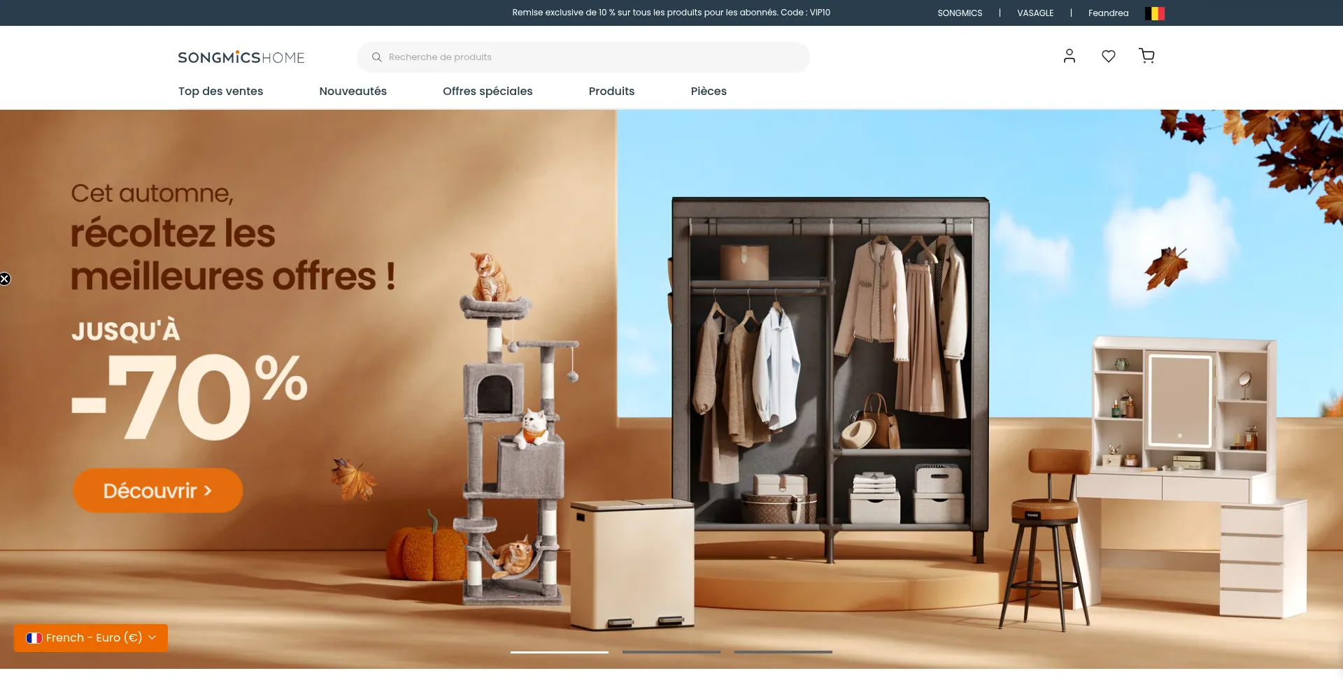 分析表明 songmicshome.be 作为电子商务平台运营,促进商品或服务的在线交易。该网站实现了购物车功能、支付处理系统和产品目录功能,这些是商业零售运营的典型特征。