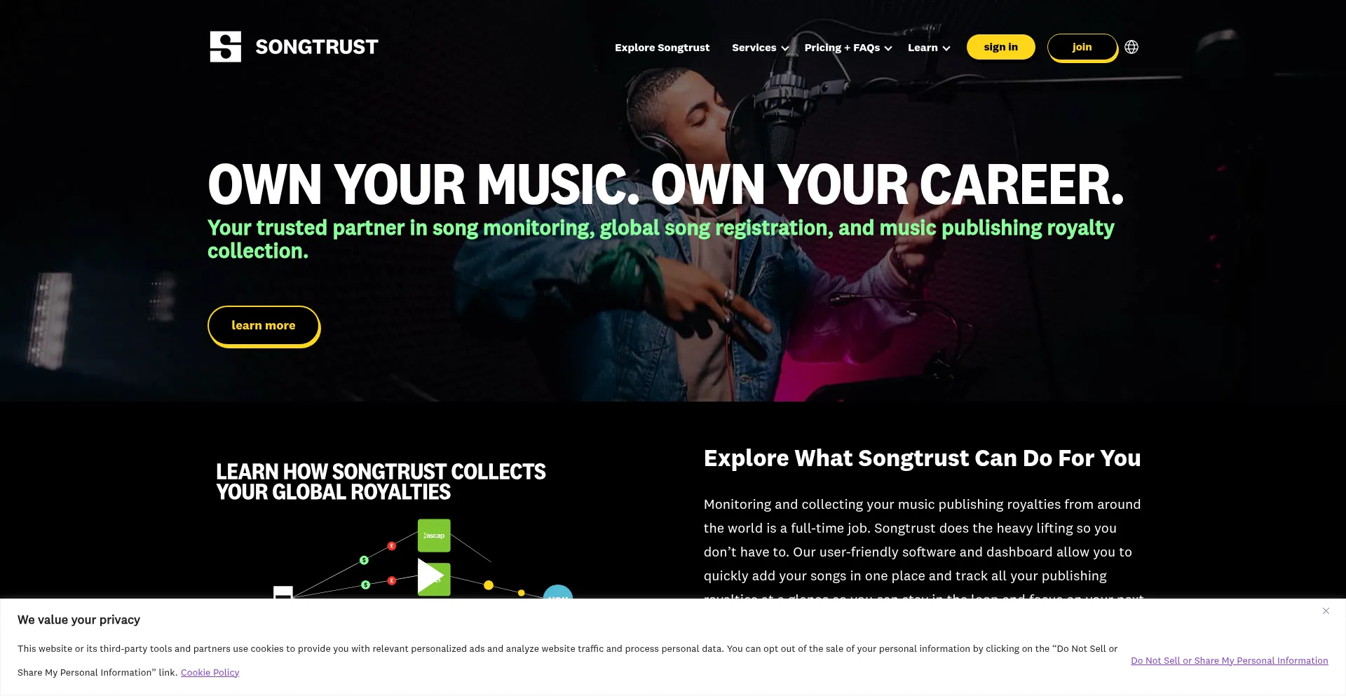 Songtrust empowers creators to own their music with song monitoring, song registration, and global publishing royalty collection, as well as music publishing education for a suc...