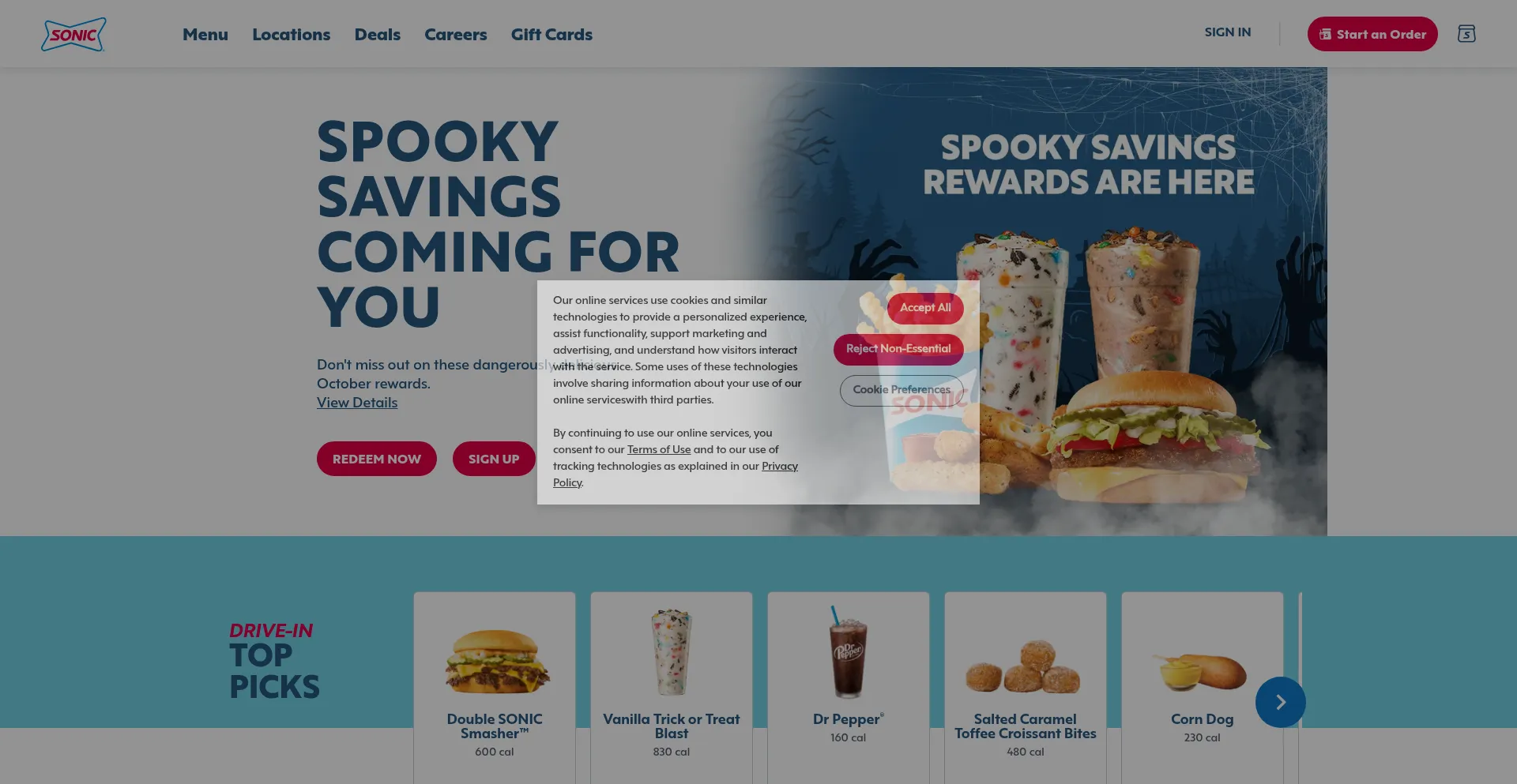 该网站实现符合GDPR或CCPA等隐私法规的cookie同意机制。这表明 sonicdrivein.com 遵守数据保护标准并为用户提供对个人数据收集实践的控制。
