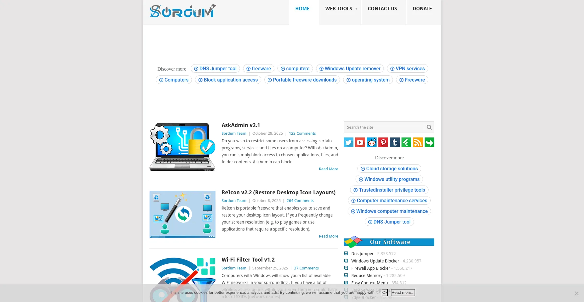 网站上存在社交媒体链接表明 sordum.org 在社交媒体上维护官方账户,这是可信度和参与度的积极信号。