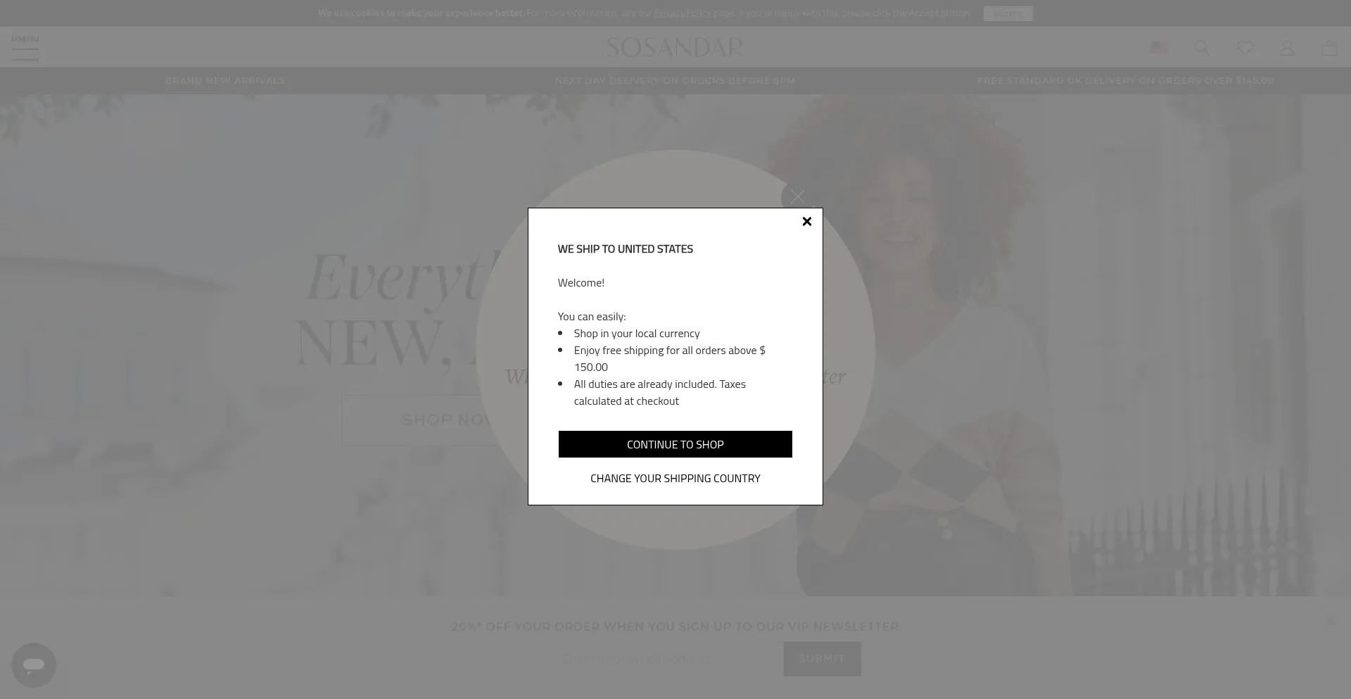 该网站实现符合GDPR或CCPA等隐私法规的cookie同意机制。这表明 sosandar.com 遵守数据保护标准并为用户提供对个人数据收集实践的控制。