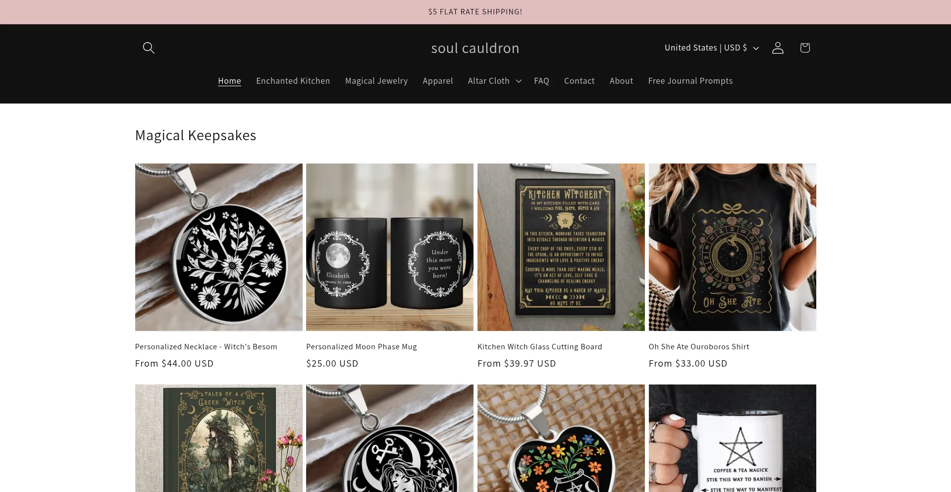 分析表明 soulcauldron.com 作为电子商务平台运营,促进商品或服务的在线交易。该网站实现了购物车功能、支付处理系统和产品目录功能,这些是商业零售运营的典型特征。