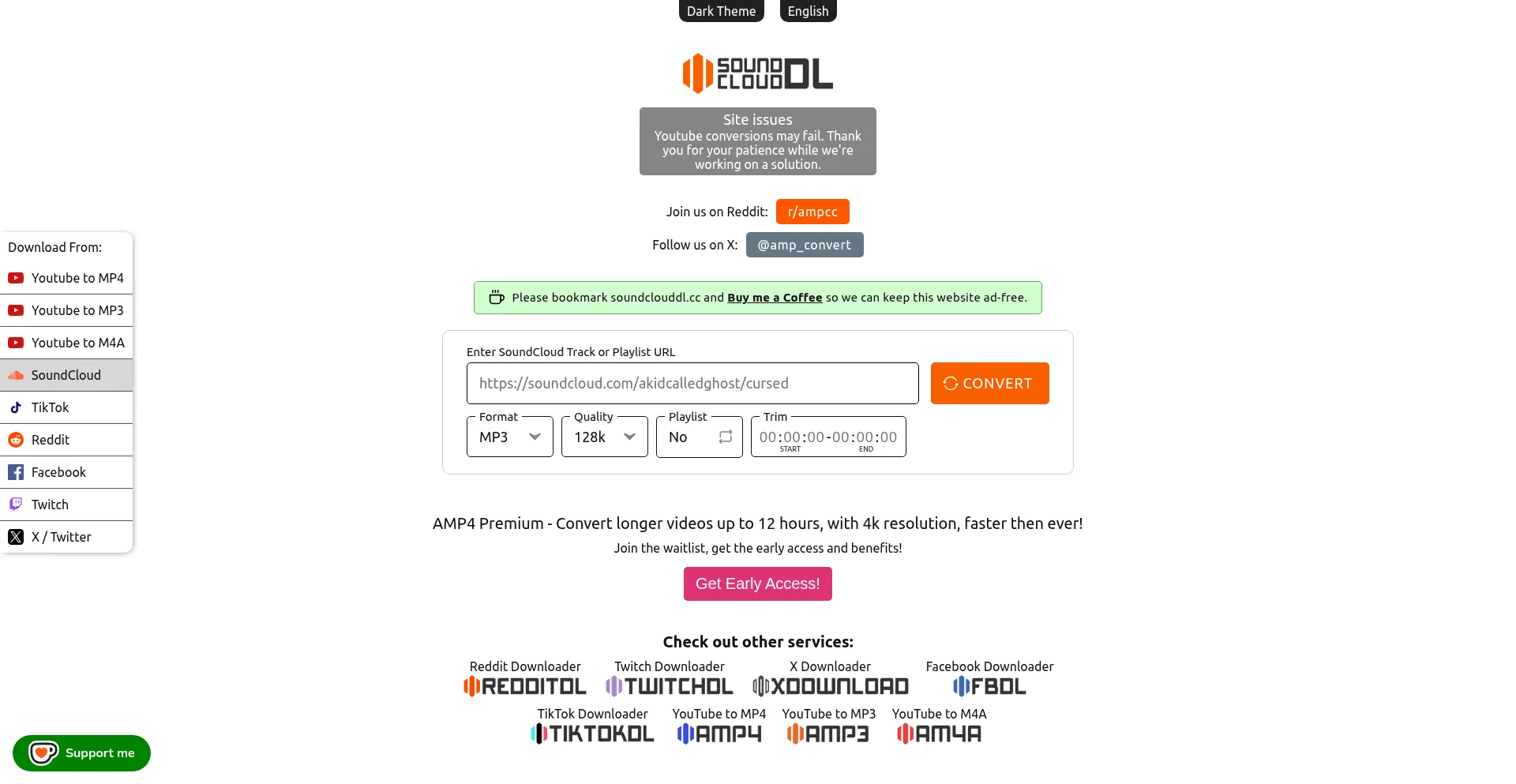 SoundCloudDL SoundCloud downloader. Supports playlist downloads. Free and safe to use, without ads. No login required.