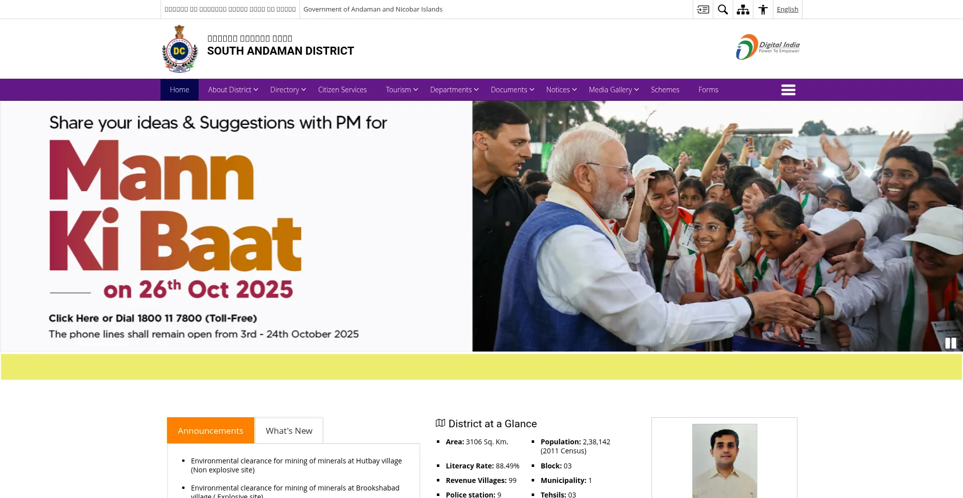 District South Andaman, Government of Andaman and Nicobar | Gateway of Andaman and Nicobar | India