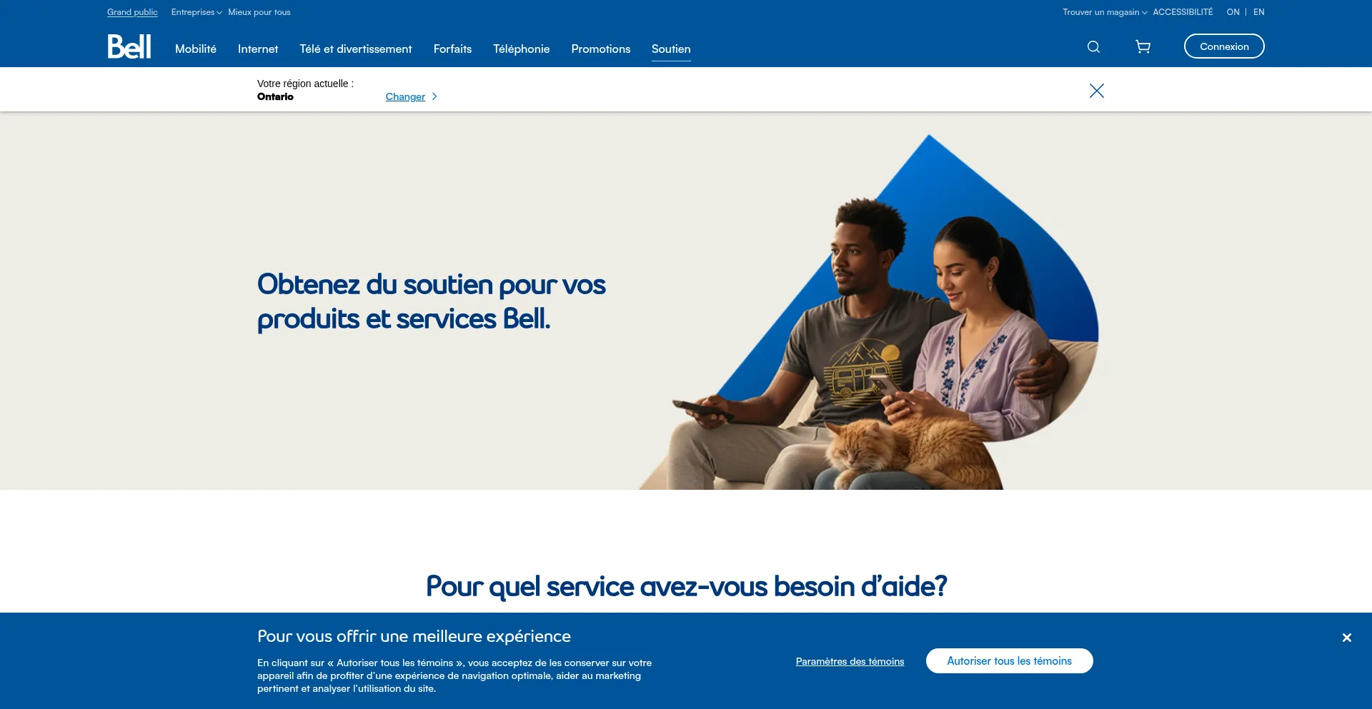该网站实现符合GDPR或CCPA等隐私法规的cookie同意机制。这表明 soutien.bell.ca 遵守数据保护标准并为用户提供对个人数据收集实践的控制。