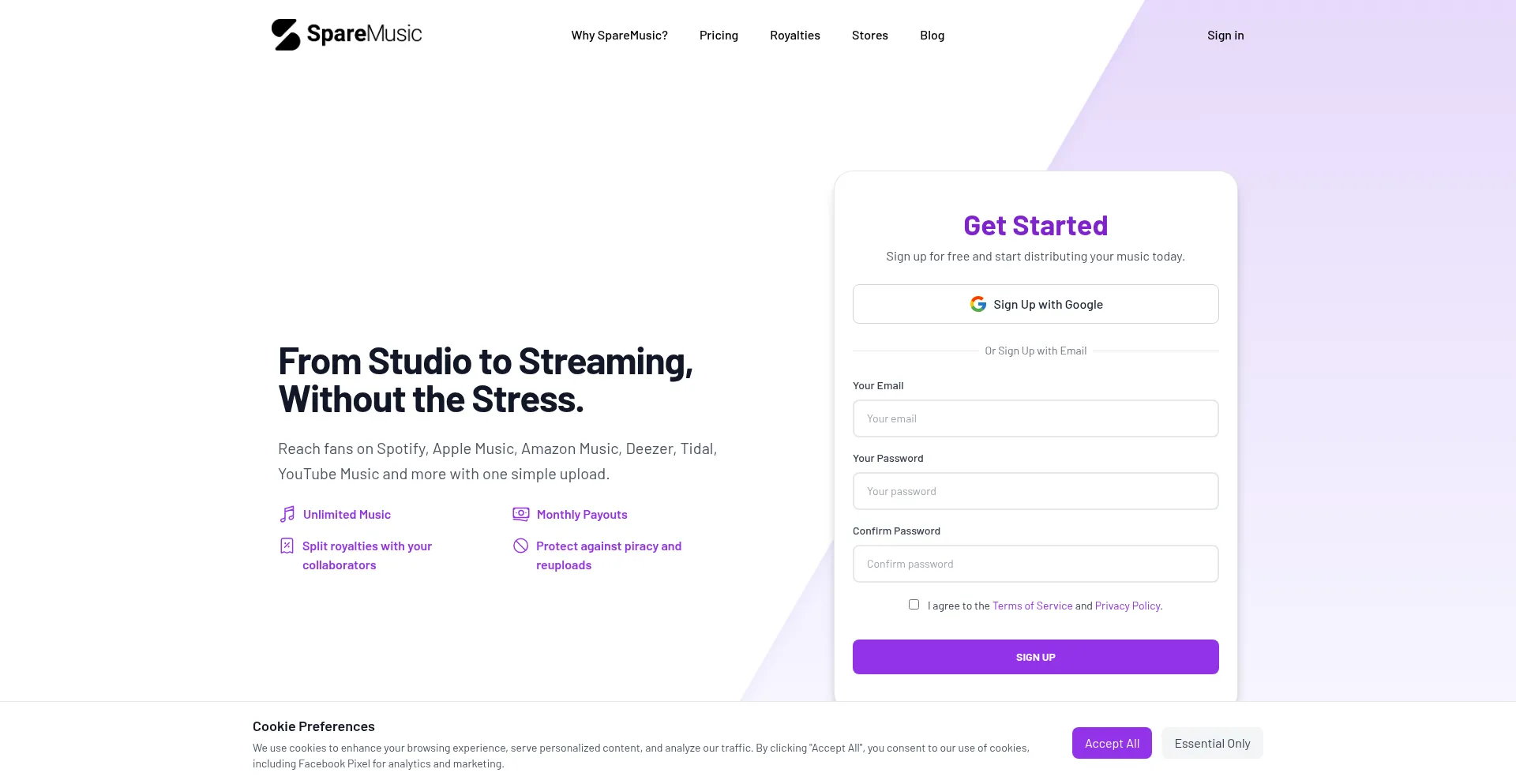 Upload your music to Spotify, Apple Music and more | SpareMusic