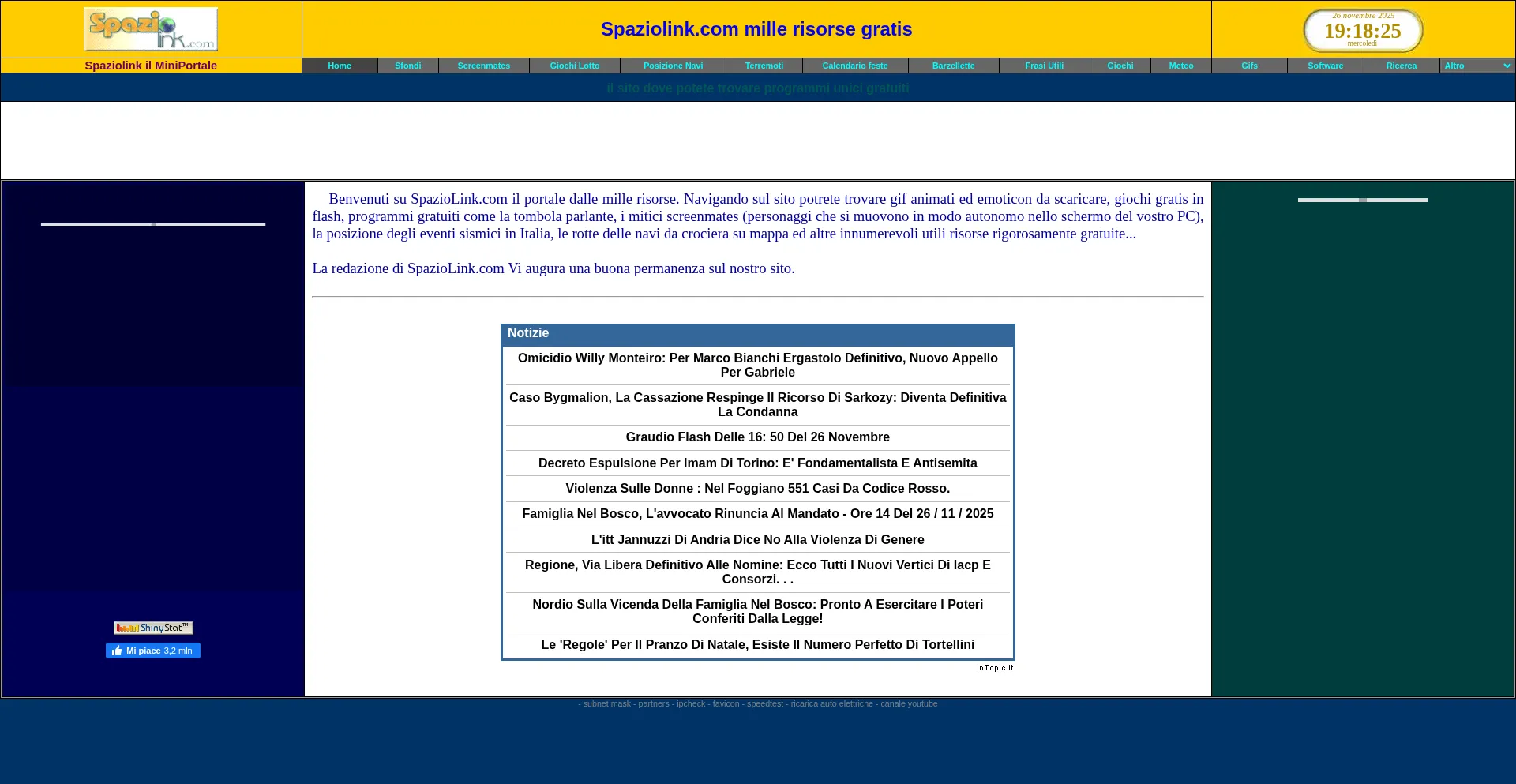 Sfondi desktop, gif animate, barzellette, giochi gratis, programmi gratis, terremoti, frasi auguri, screenmates, lotto, superenalotto, navi costa, meteo, notizie