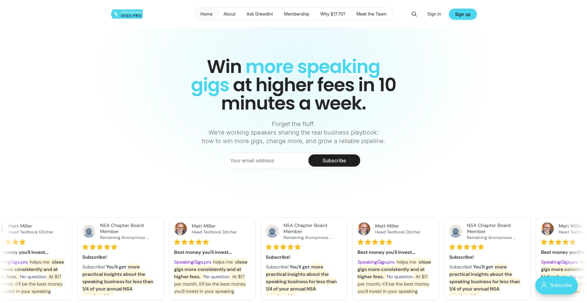 A weekly email newsletter created just for you: the serious professional speaker.