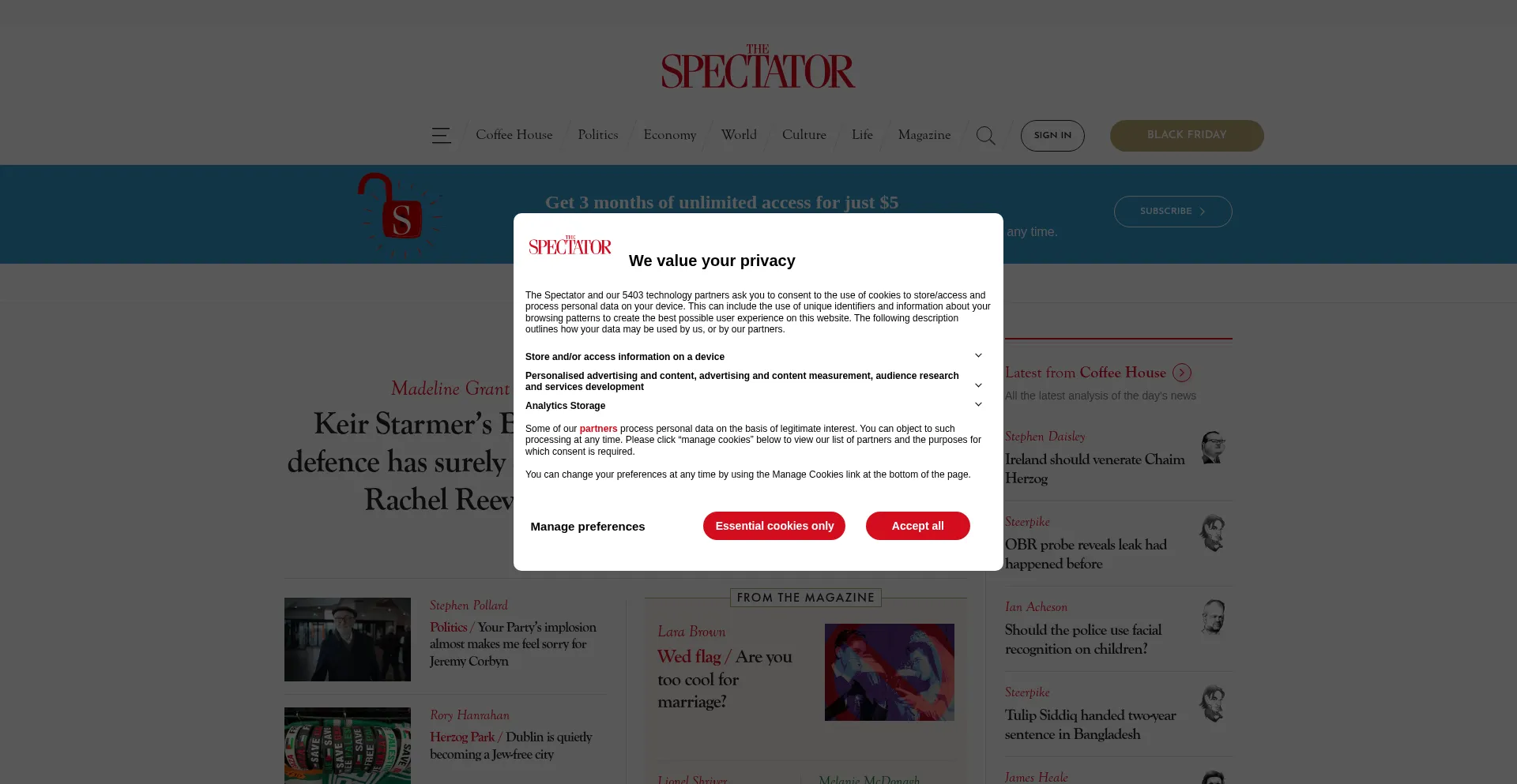 spectator.co.uk 使用 Google Tag Manager 在其网站上添加和更新追踪代码(标签)。