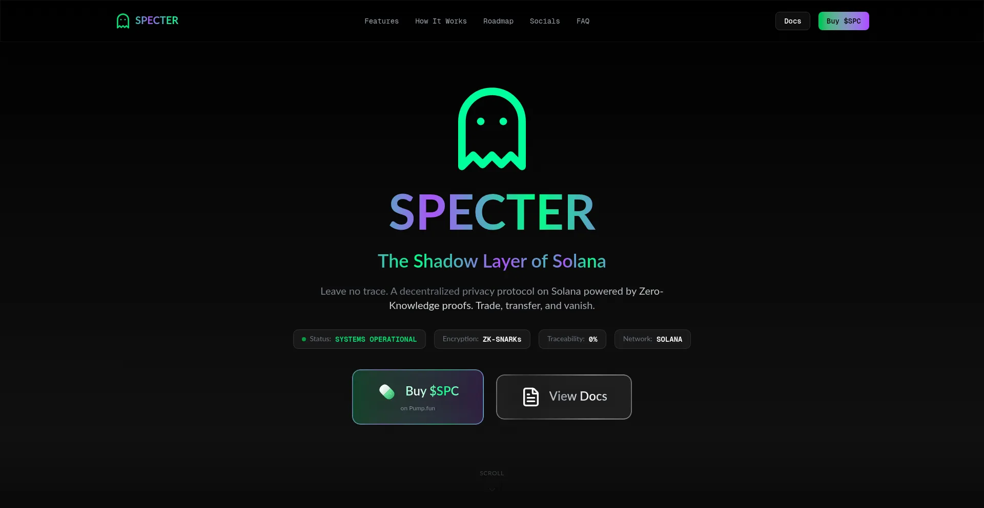 Leave no trace. A decentralized privacy protocol on Solana powered by Zero-Knowledge proofs. Trade, transfer, and vanish.