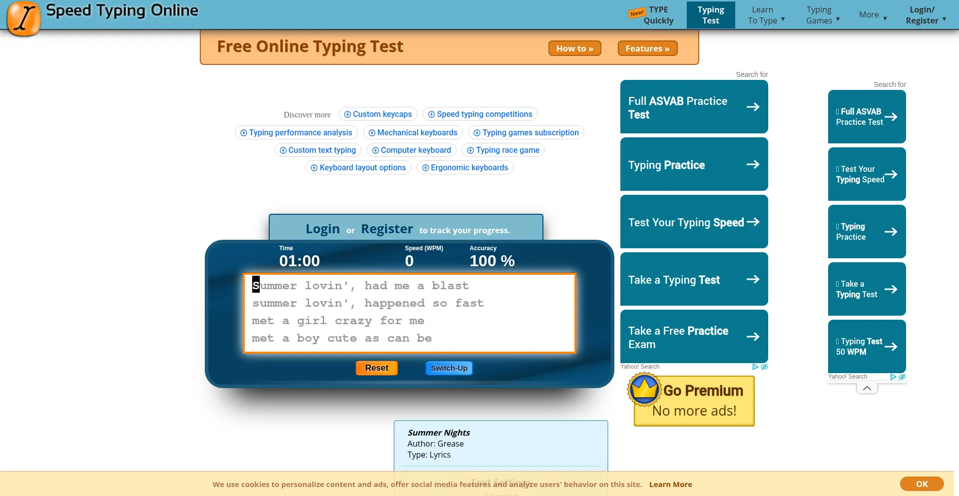 Free online typing test to see how fast you type! Features lots of text options and many test lengths. Easy and fun way to test and improve your typing speed.