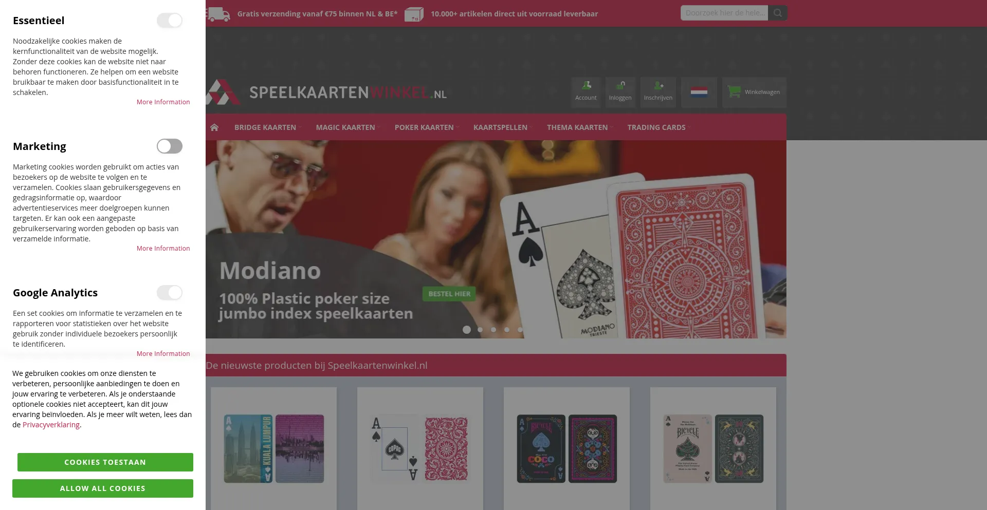 Speelkaarten winkel is de #1 van Nederland en België. Sinds 2002 kun je in onze speelkaarten shop naast kaartspellen en kaart accessoires ook playing cards, bridgekaarten, magi...