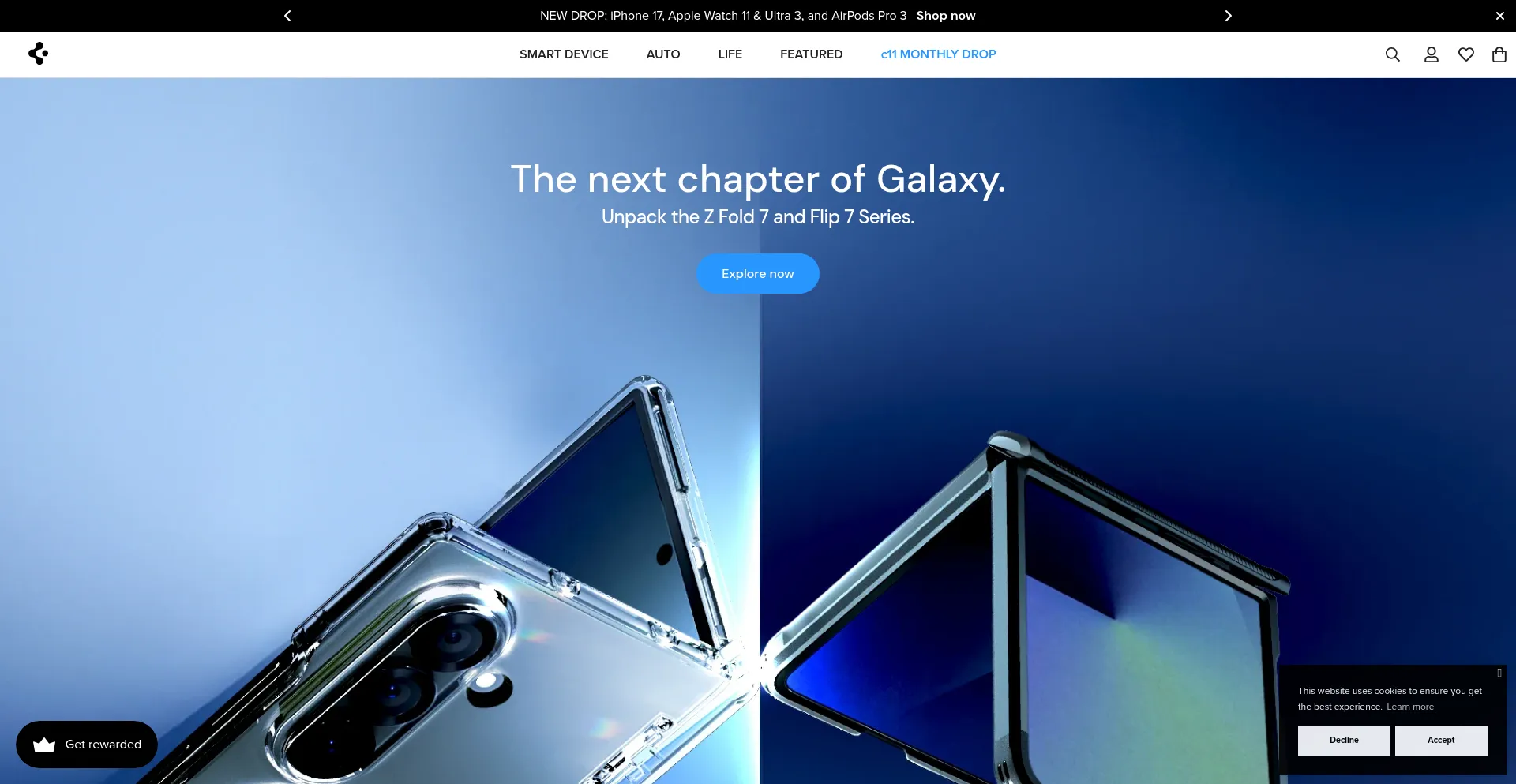 该网站实现符合GDPR或CCPA等隐私法规的cookie同意机制。这表明 spigen.com 遵守数据保护标准并为用户提供对个人数据收集实践的控制。
