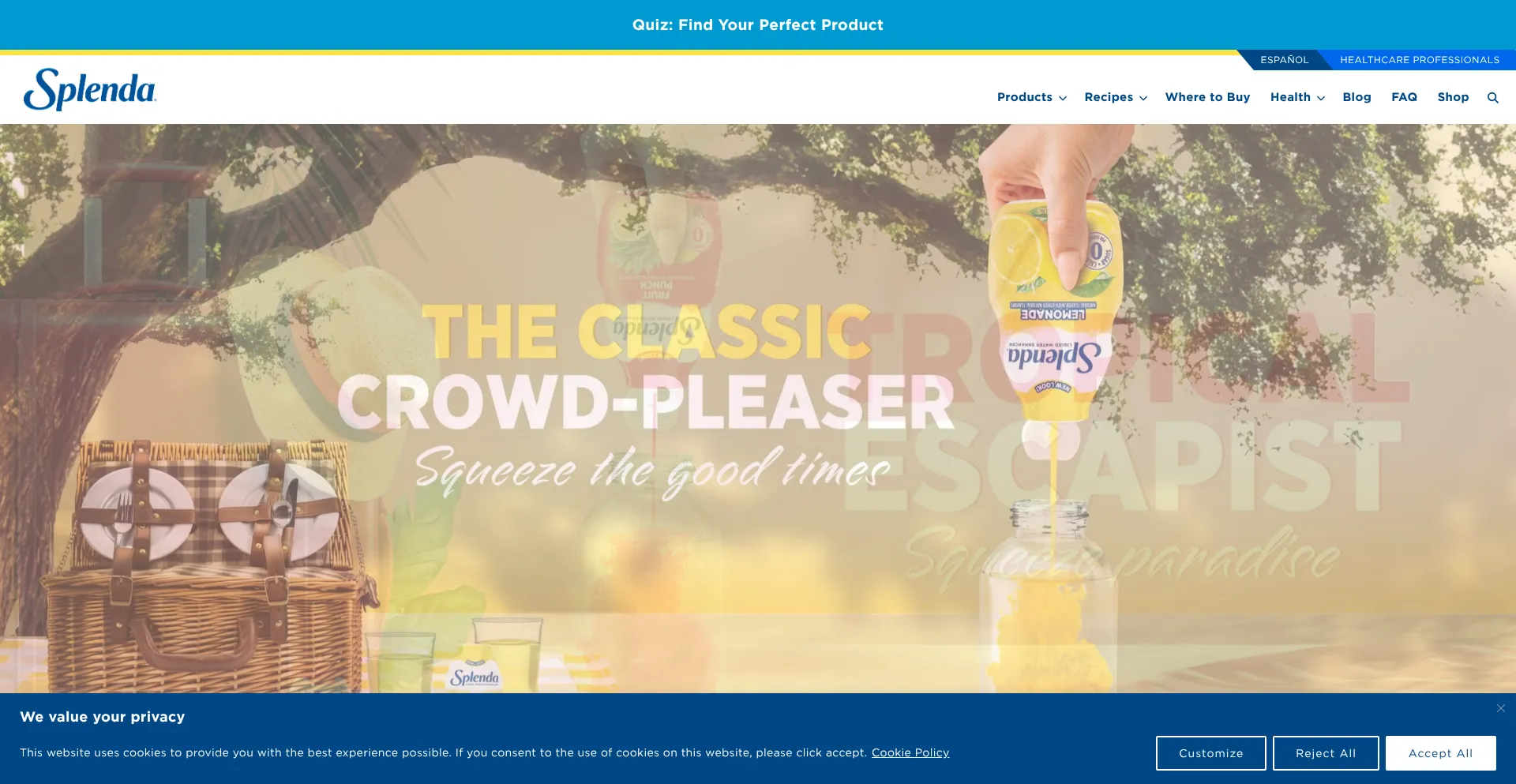 该网站实现符合GDPR或CCPA等隐私法规的cookie同意机制。这表明 splenda.com 遵守数据保护标准并为用户提供对个人数据收集实践的控制。