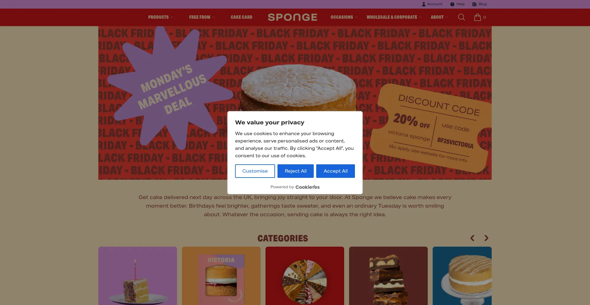 该网站实现符合GDPR或CCPA等隐私法规的cookie同意机制。这表明 sponge.co.uk 遵守数据保护标准并为用户提供对个人数据收集实践的控制。