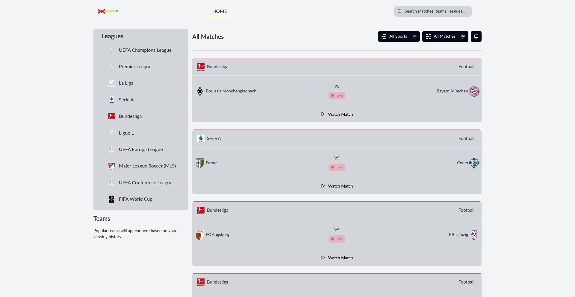 Sportbn – Free HD soccer streams with live scores and match updates. Also stream basketball, tennis, hockey & American football.