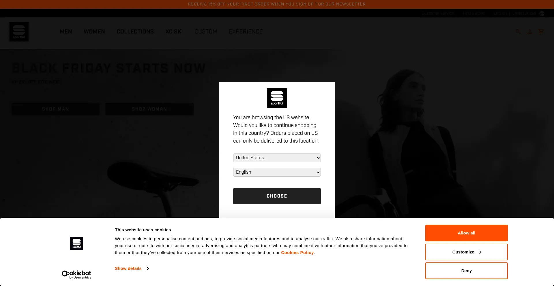 该网站实现符合GDPR或CCPA等隐私法规的cookie同意机制。这表明 sportful.com 遵守数据保护标准并为用户提供对个人数据收集实践的控制。