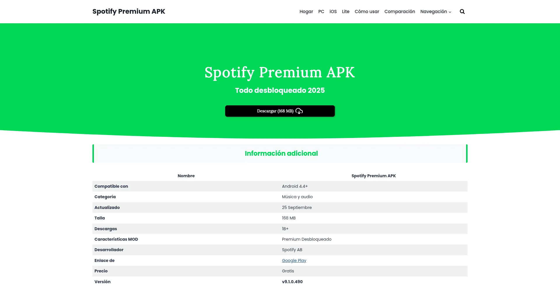 spotipremiumapkdescargar.com 提供 Android 设备移动应用程序,表明平台存在已扩展到网络服务之外。