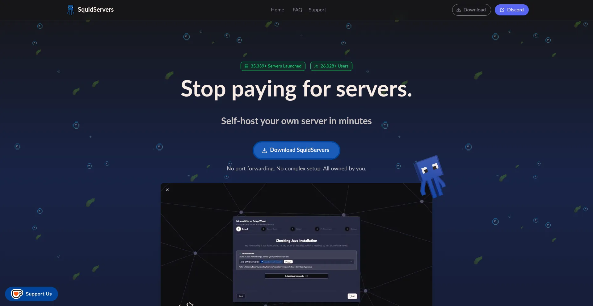 SquidServers is a free desktop application that lets you host Minecraft servers instantly. No port forwarding, no monthly fees, no technical setup required. Download now and sta...
