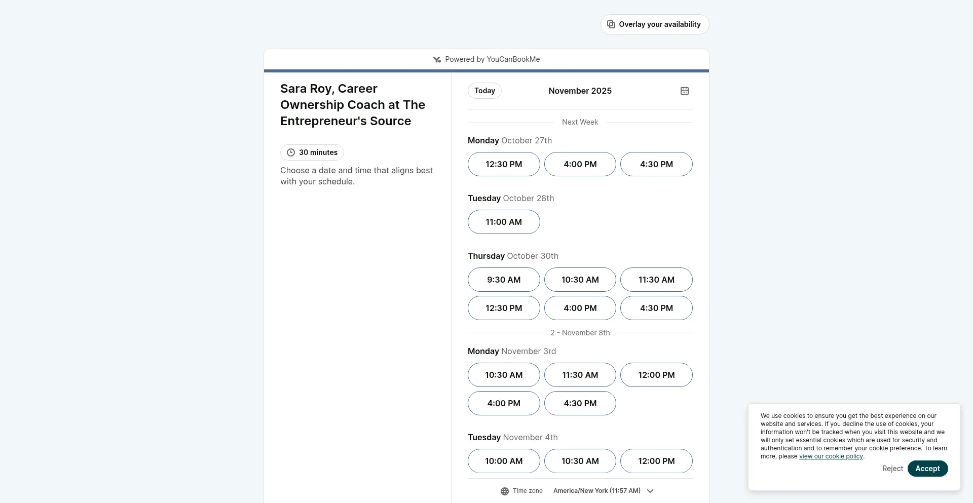 该网站实现符合GDPR或CCPA等隐私法规的cookie同意机制。这表明 sroy-cec.youcanbook.me 遵守数据保护标准并为用户提供对个人数据收集实践的控制。