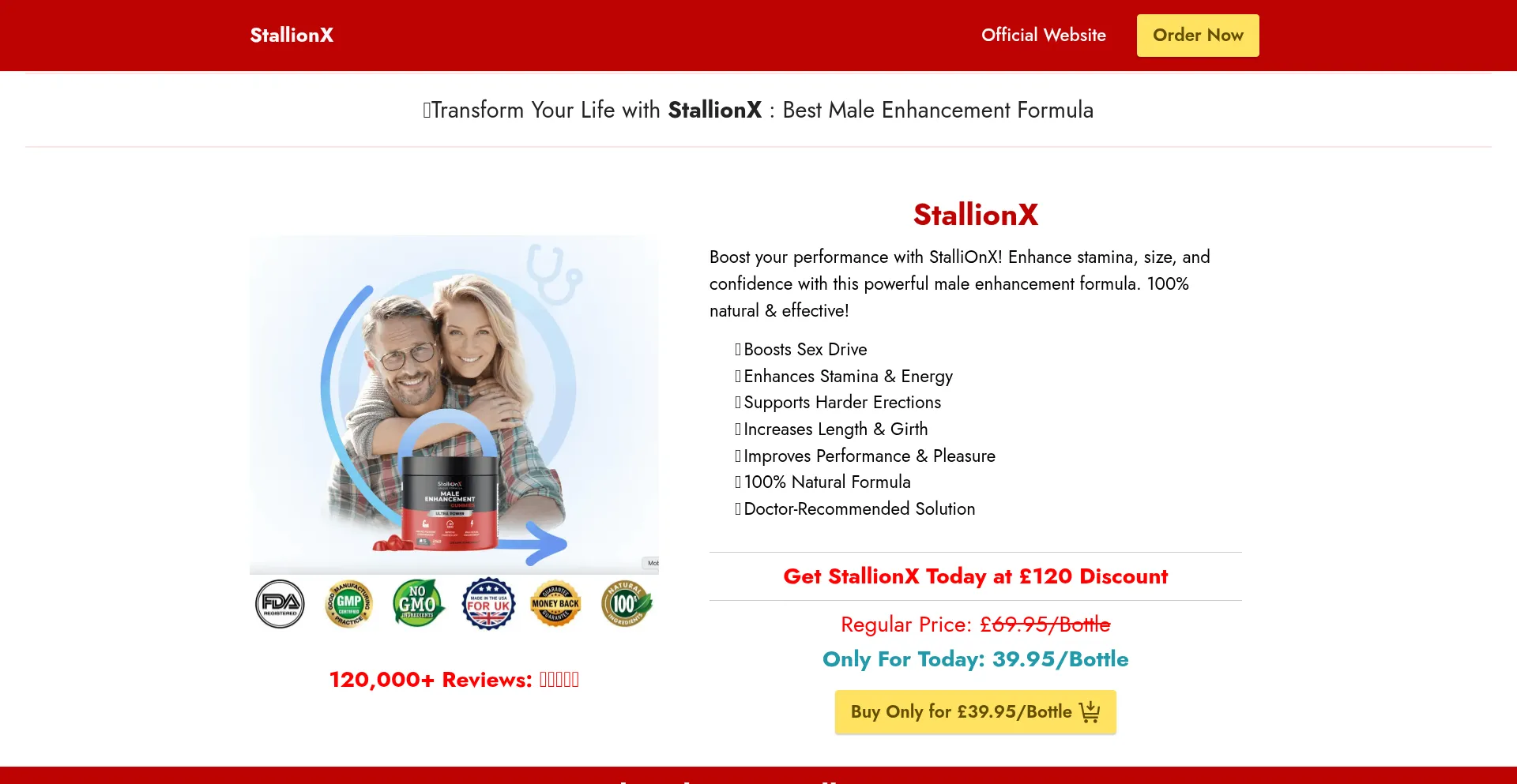Boost your performance with StalliOnX! Enhance stamina, size, and confidence with this powerful male enhancement formula. 100% natural & effective