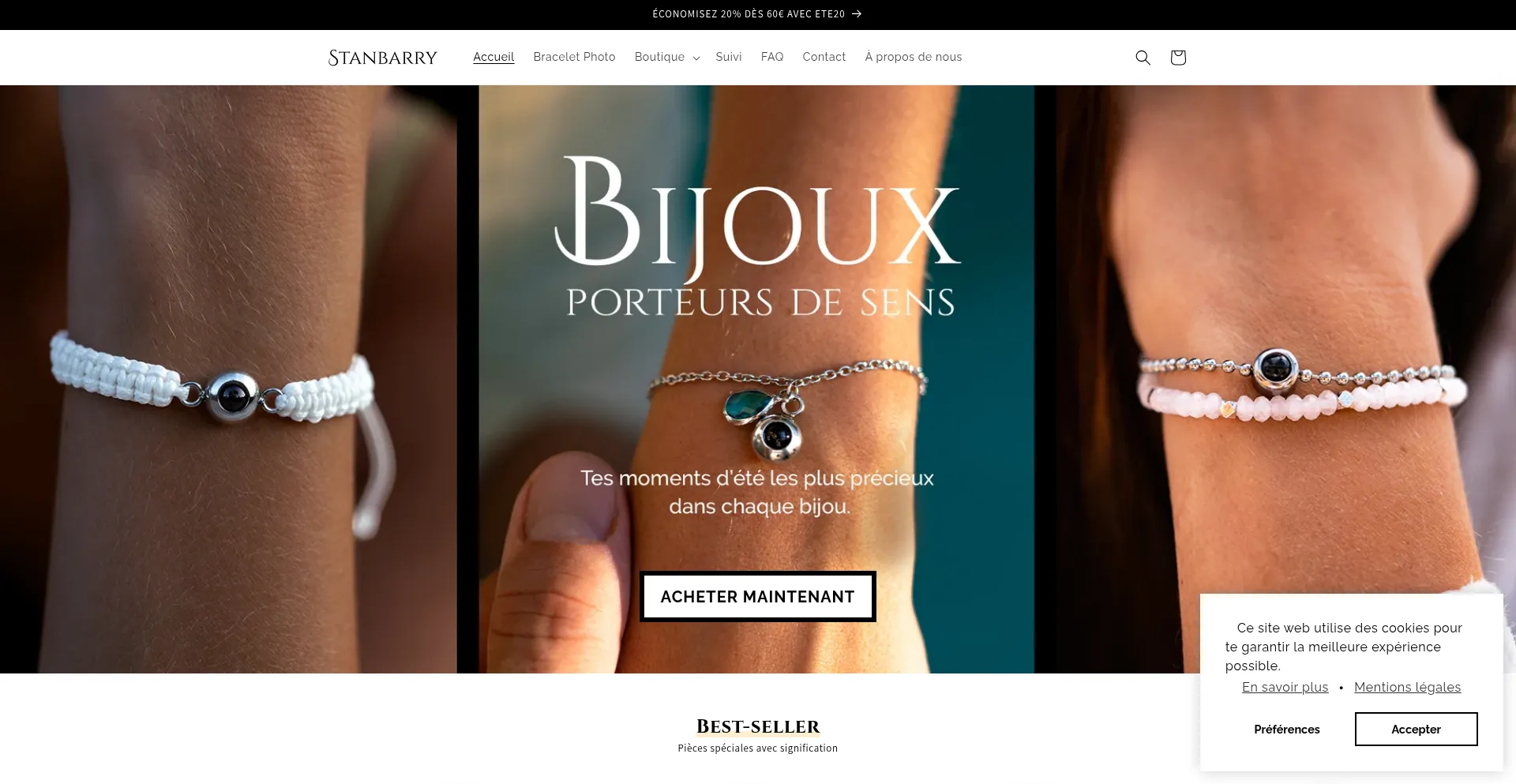 该网站实现符合GDPR或CCPA等隐私法规的cookie同意机制。这表明 stanbarry.fr 遵守数据保护标准并为用户提供对个人数据收集实践的控制。