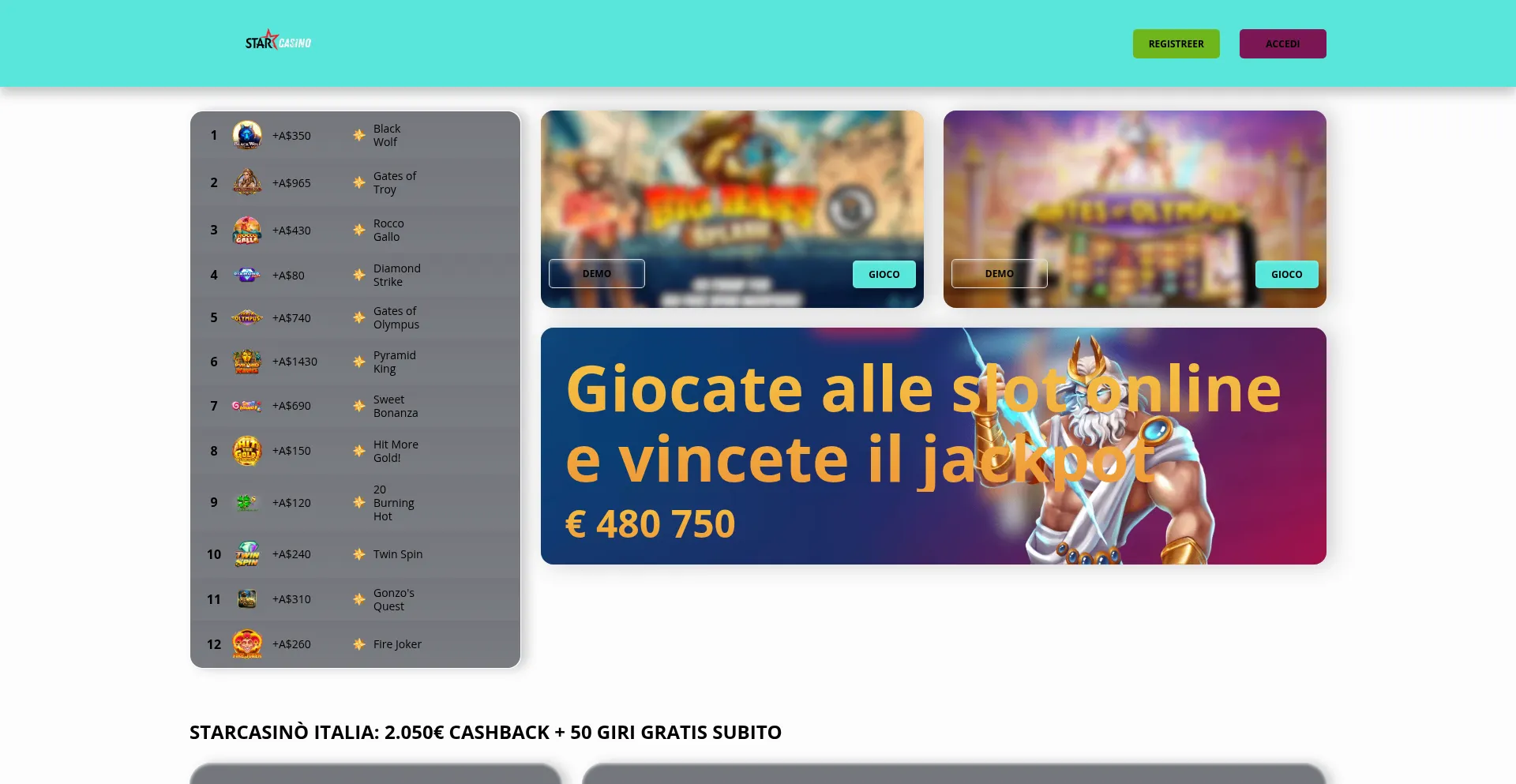 Su Star Casino, oltre 1000 giochi di slot, tra cui slot con jackpot e un ampio casinò dal vivo con roulette, blackjack e molto altro. Provate le migliori slot online e i classi...