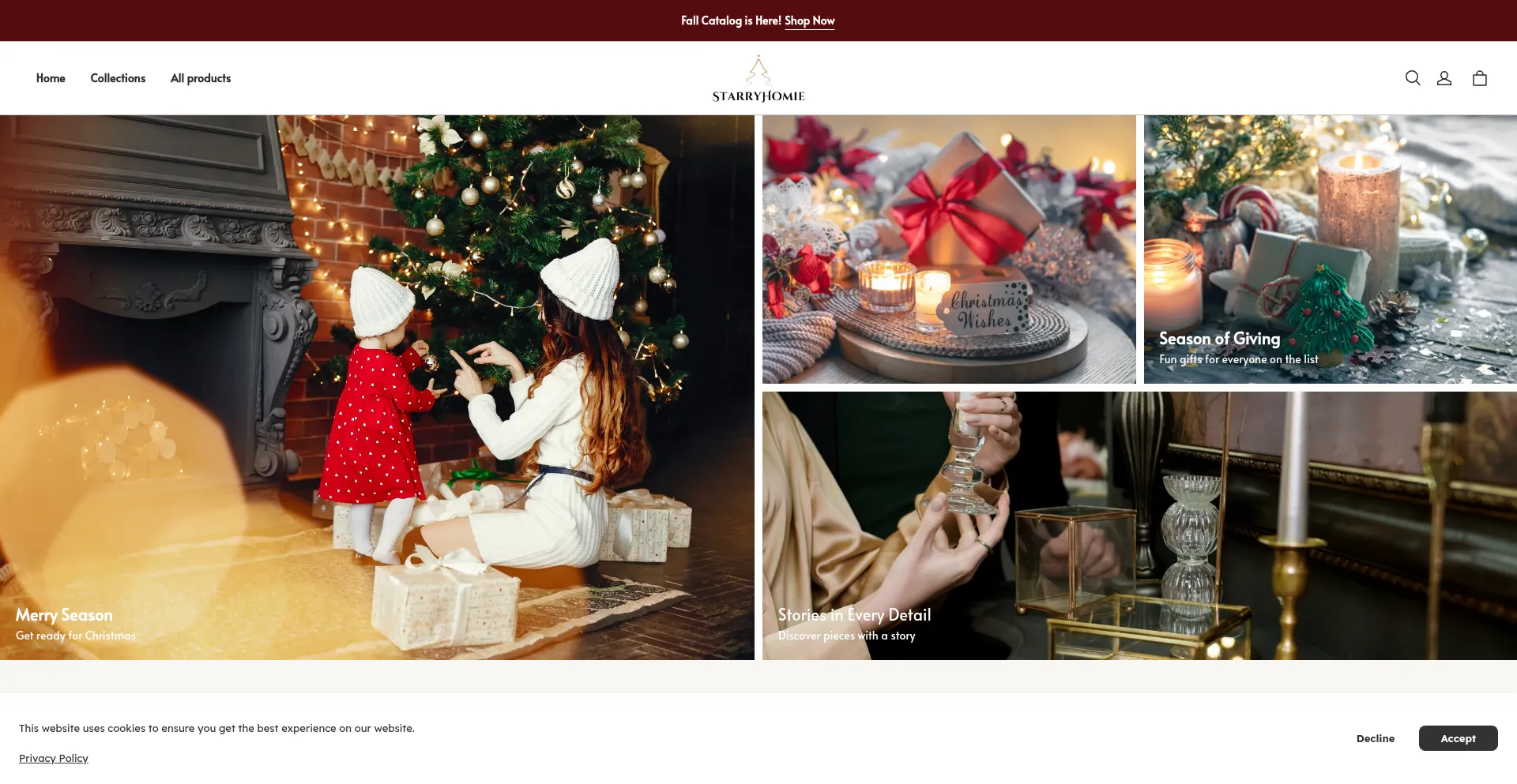分析表明 starryhomie.com 作为电子商务平台运营,促进商品或服务的在线交易。该网站实现了购物车功能、支付处理系统和产品目录功能,这些是商业零售运营的典型特征。