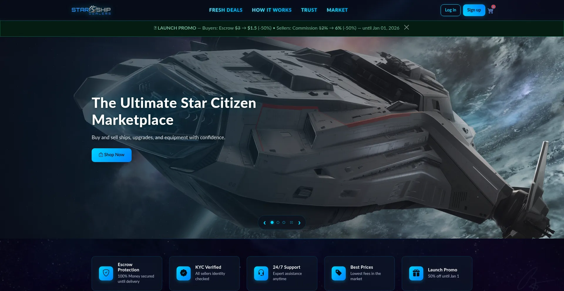 StarShipDealers is the premium Star Citizen marketplace to buy and sell ships, CCUs, upgrades, paints, gear and items at the best deals.