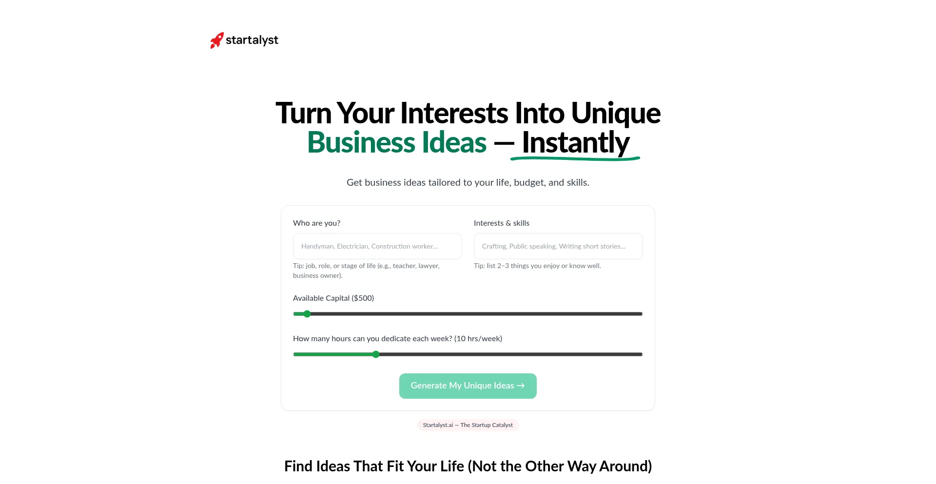 Turn Your Interests Into Unique Business Ideas | Startalyst.ai