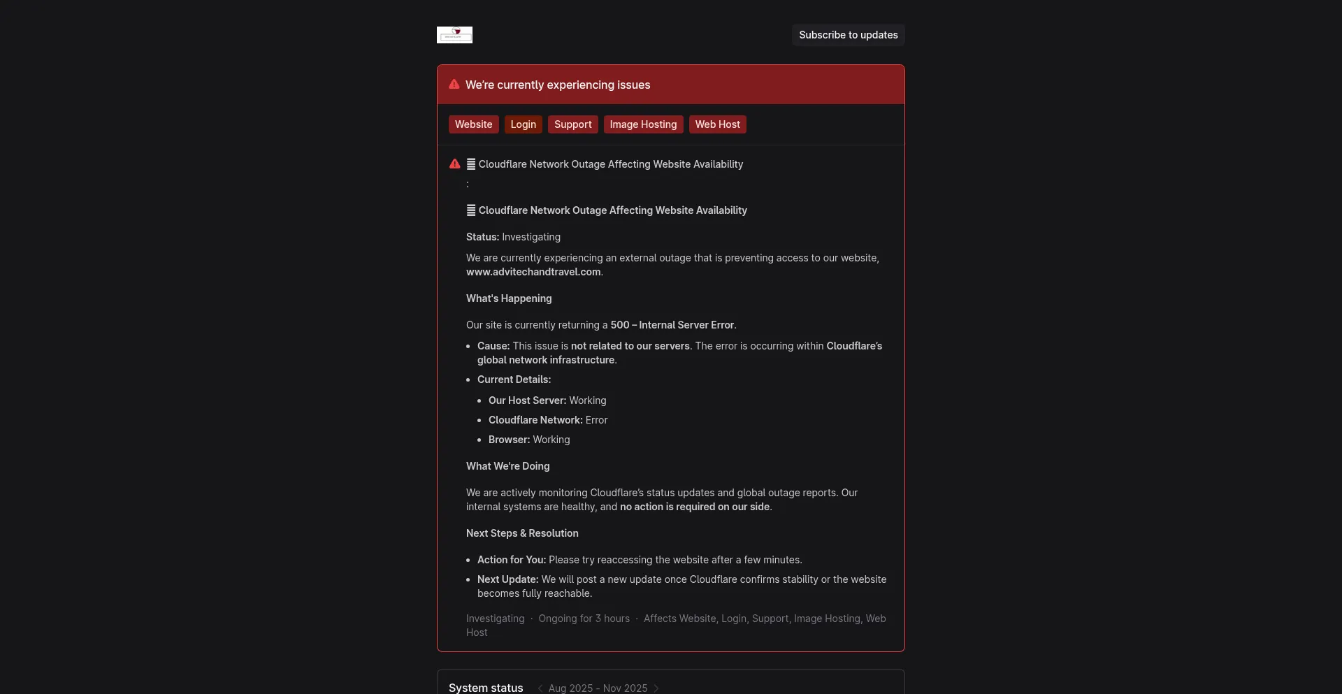 域名注册最近发生,将 status.advitechandtravel.com 确立为新创建的网络财产。新域名通常缺乏已建立的声誉指标、用户评论或历史性能数据,需要在参与前进行额外验证。