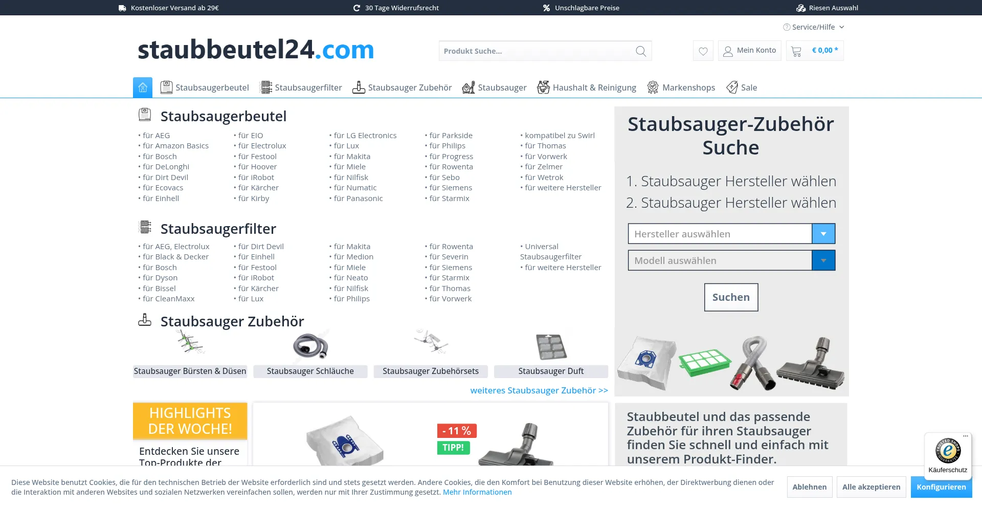 Staubbeutel, Staubsaugerbedarf günstig online kaufen