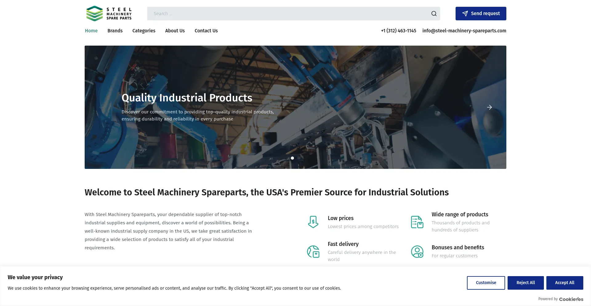 该网站实现符合GDPR或CCPA等隐私法规的cookie同意机制。这表明 steel-machinery-spareparts.com 遵守数据保护标准并为用户提供对个人数据收集实践的控制。