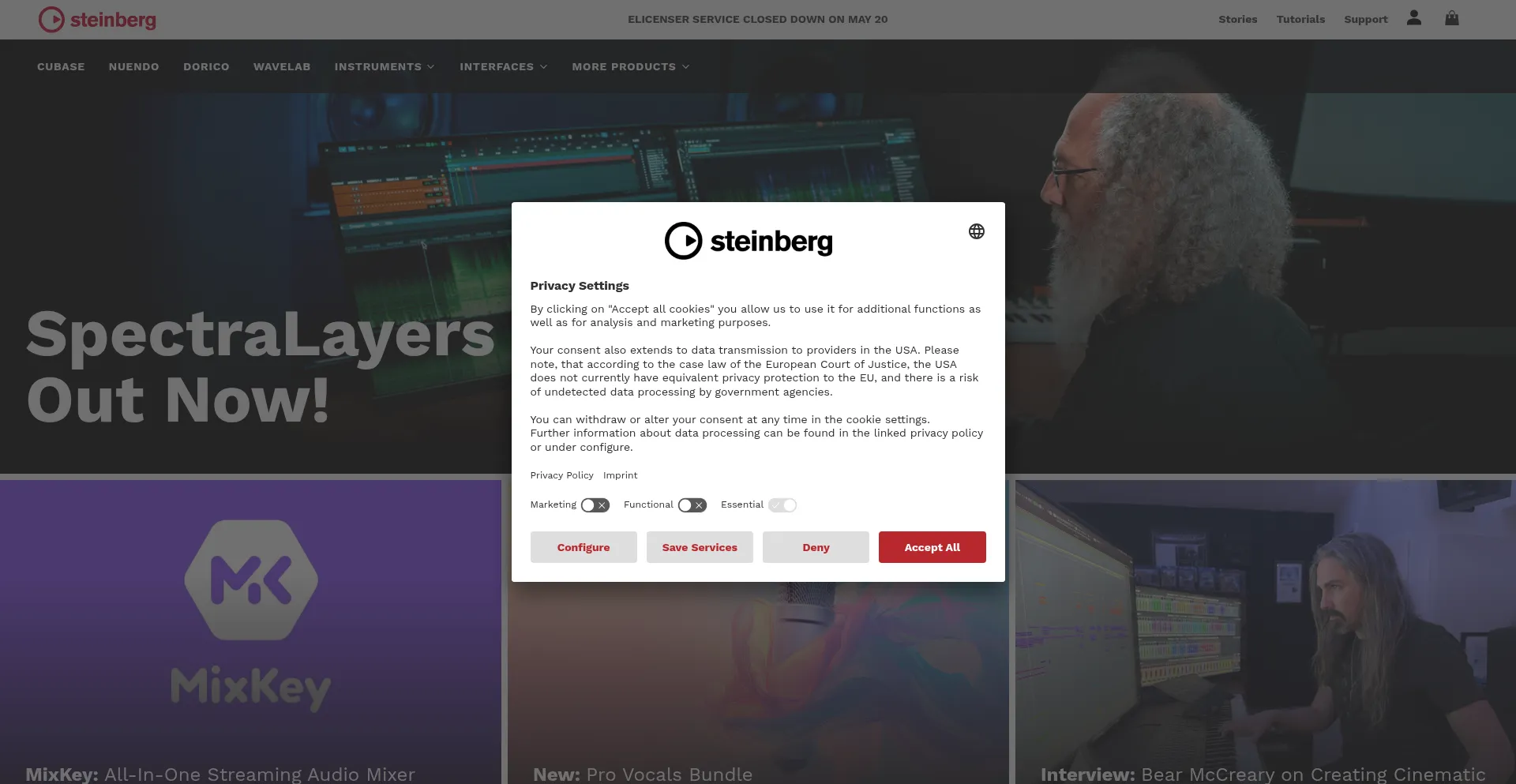 该网站实现符合GDPR或CCPA等隐私法规的cookie同意机制。这表明 steinberg.net 遵守数据保护标准并为用户提供对个人数据收集实践的控制。