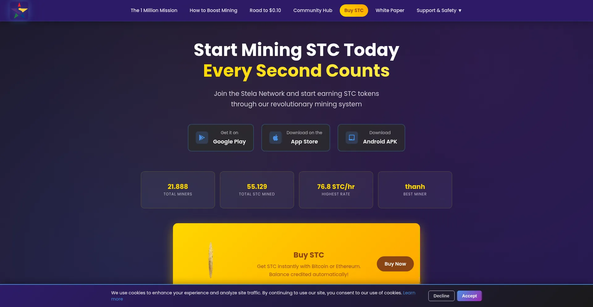 网站 stela.network 可能提供云挖矿服务或加密货币挖矿投资。一些平台提供合法的挖矿租赁服务,而其他平台可能使用虚假的挖矿仪表板来显示无法提取的虚拟收益。