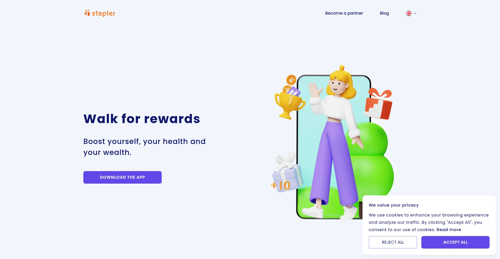 steplerapp.com 拥有可用的 iOS 移动应用程序,表明为 Apple 设备用户提供跨平台可访问性。